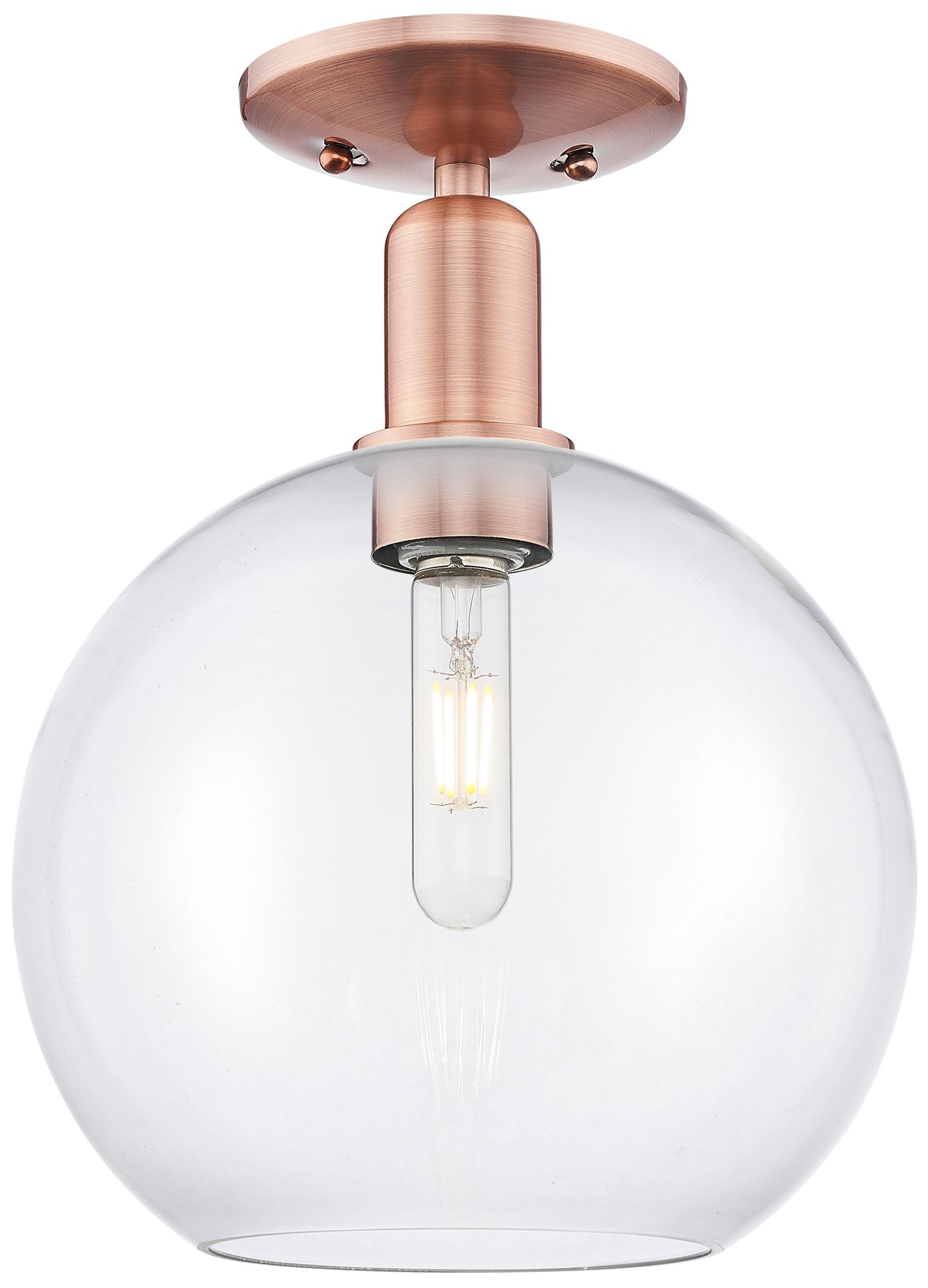 Arcadia Athens 10"W Antique Copper Semi.Flush Mount With Clear Shade