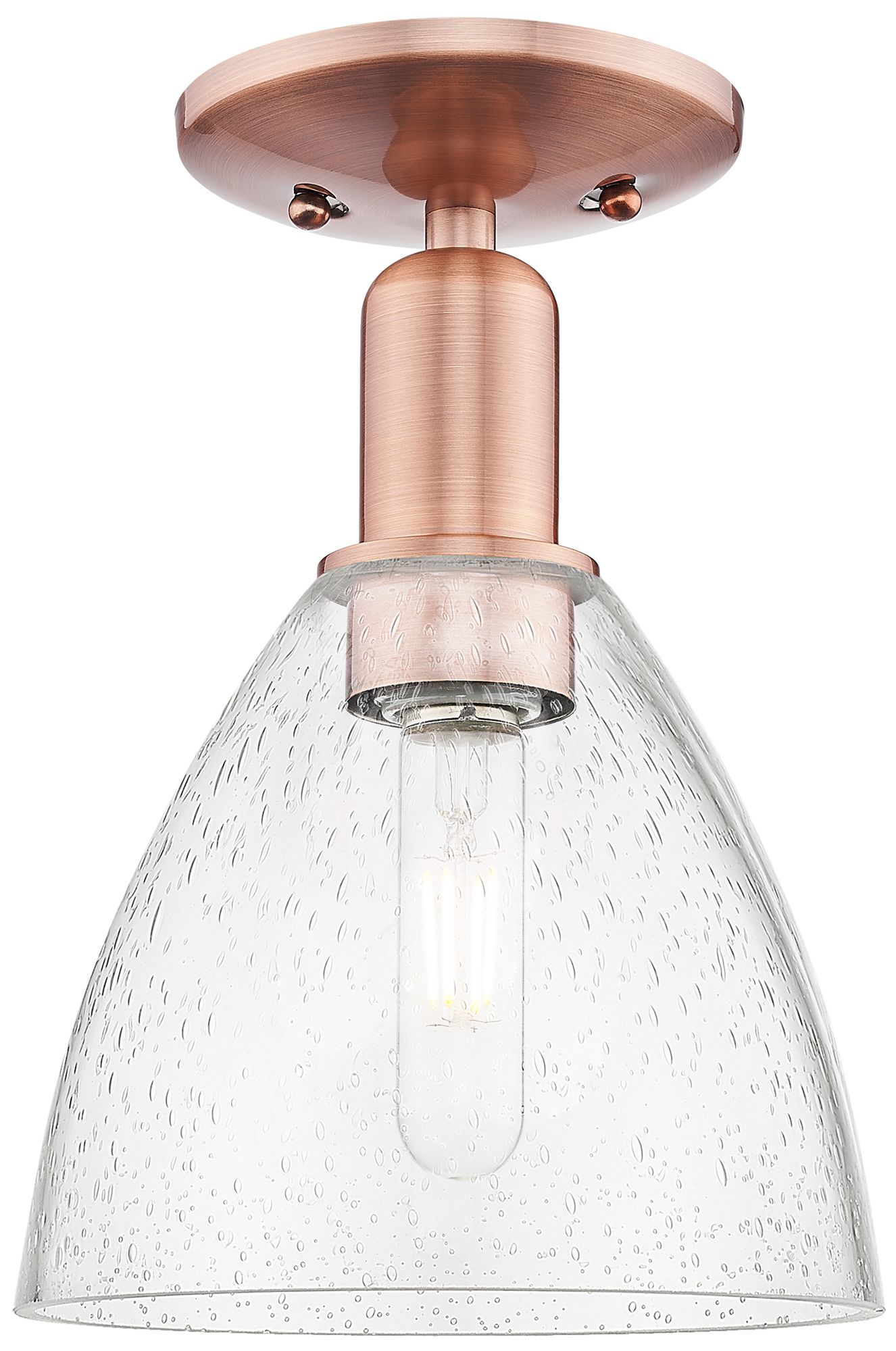 Arcadia Bristol 8"W Antique Copper Semi.Flush Mount With Seedy Shade