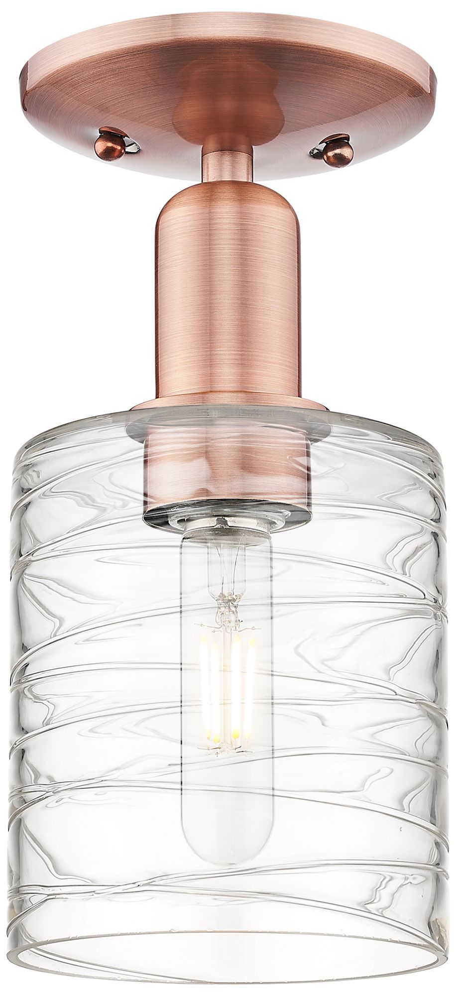 Arcadia Cobbleskill 5"W Copper Semi.Flush Mount With Deco Swirl Shade