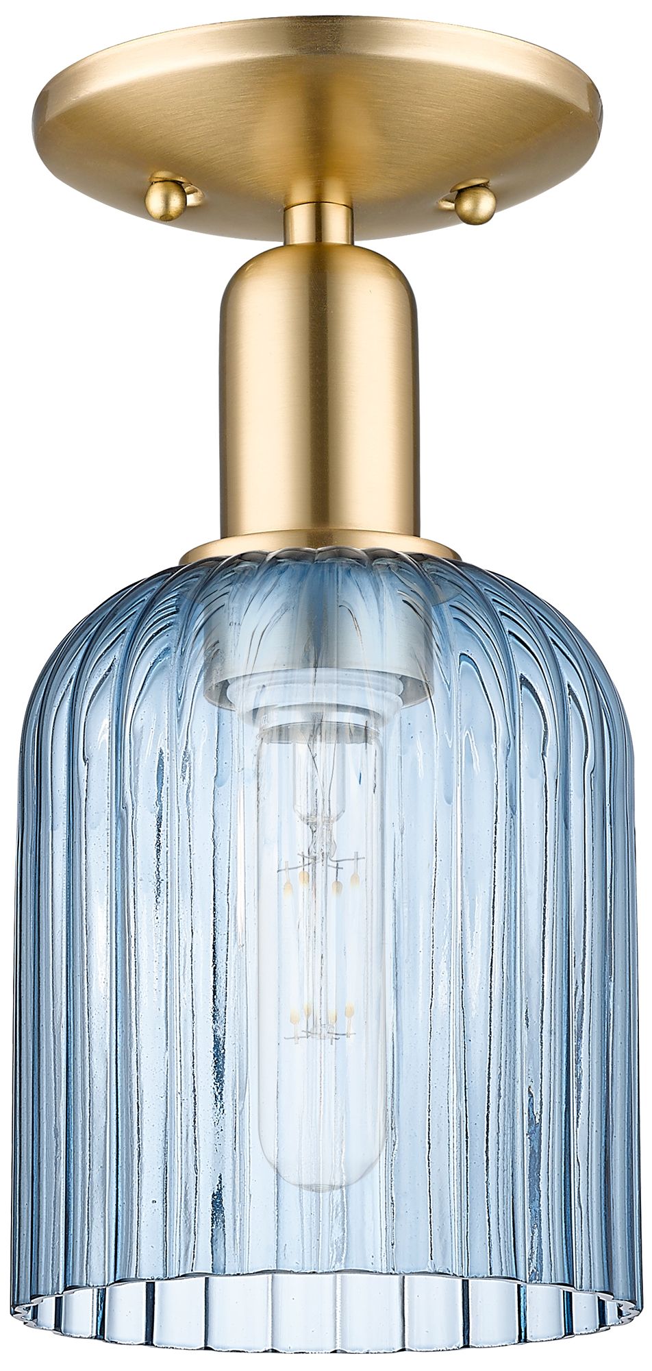 Bridal Veil 5" Wide Champagne Bronze Semi-Flush Mount With Blue Shade