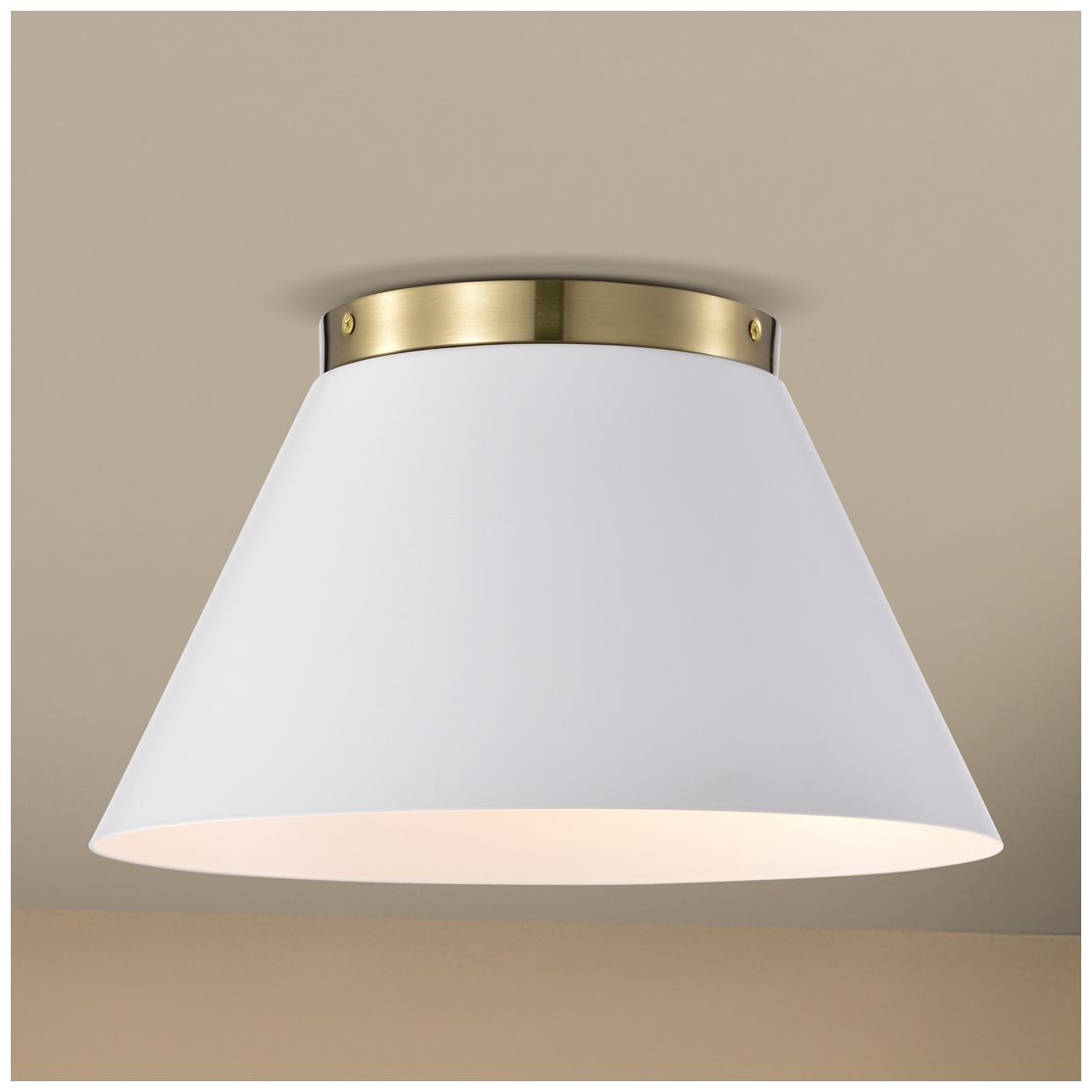 Dover; 3 Light; Small Flush Mount; White with Vintage Brass