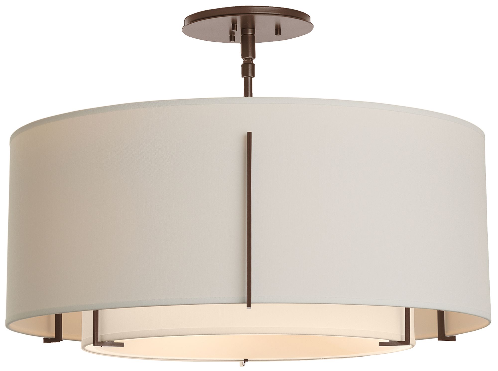 Exos Double Shade Semi-Flush - Bronze Finish - Natural & Flax Shades