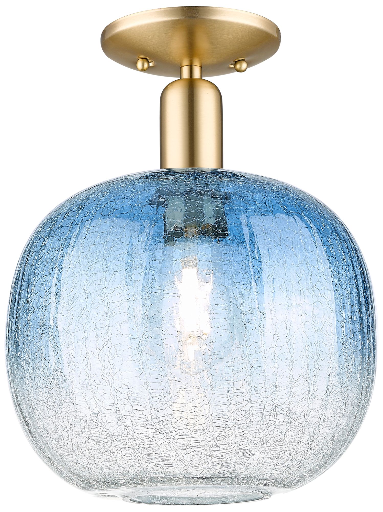 Plymouth Dome 7.5" Wide Satin Gold Semi.Flush Mount With Seafoam Shade