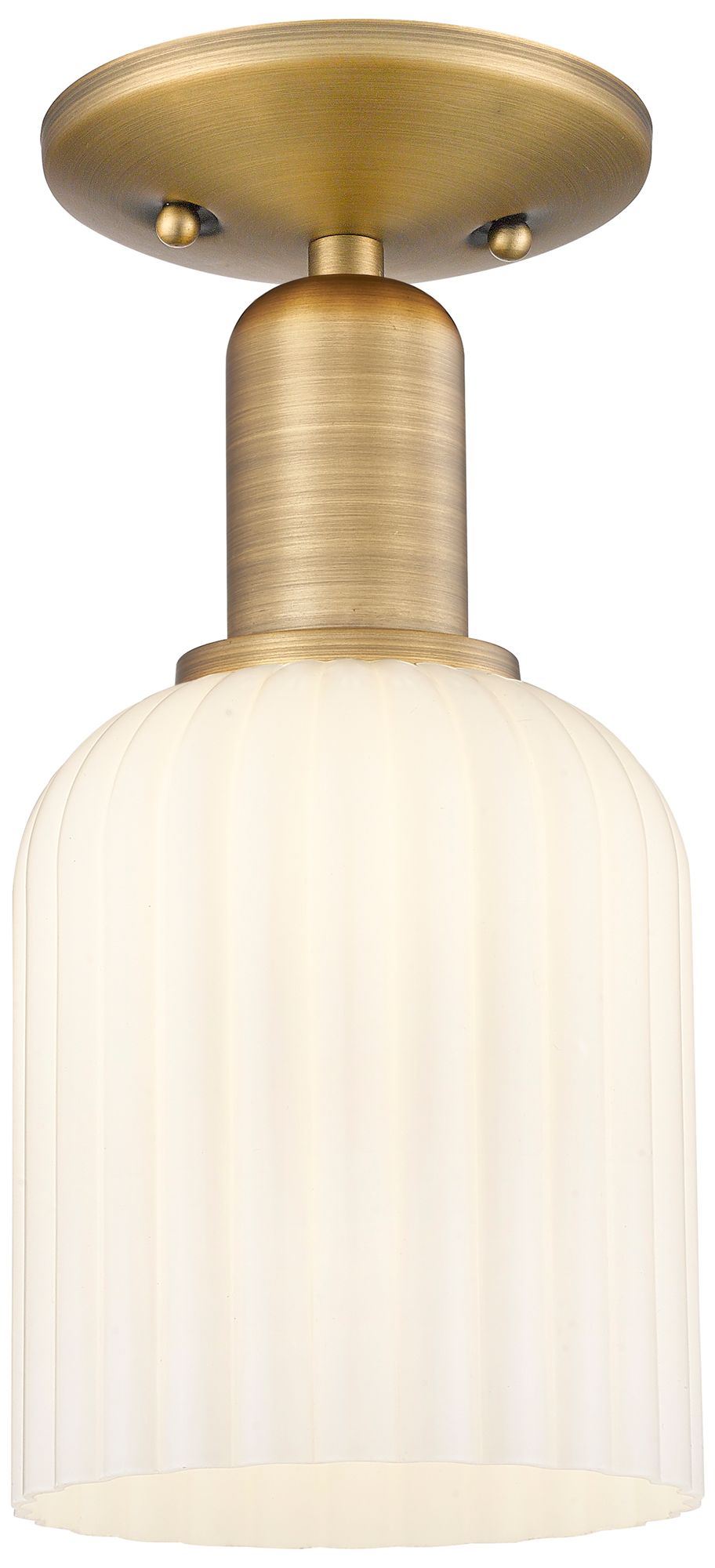 Downtown Bridal Veil 5"W Brass Semi Flush Mount w/ White Swirl Shade