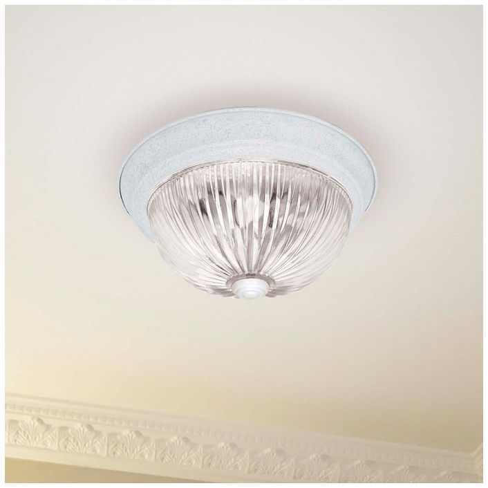 2 Light - 11" Flush with Clear Ribbed Glass - Textured White Finish