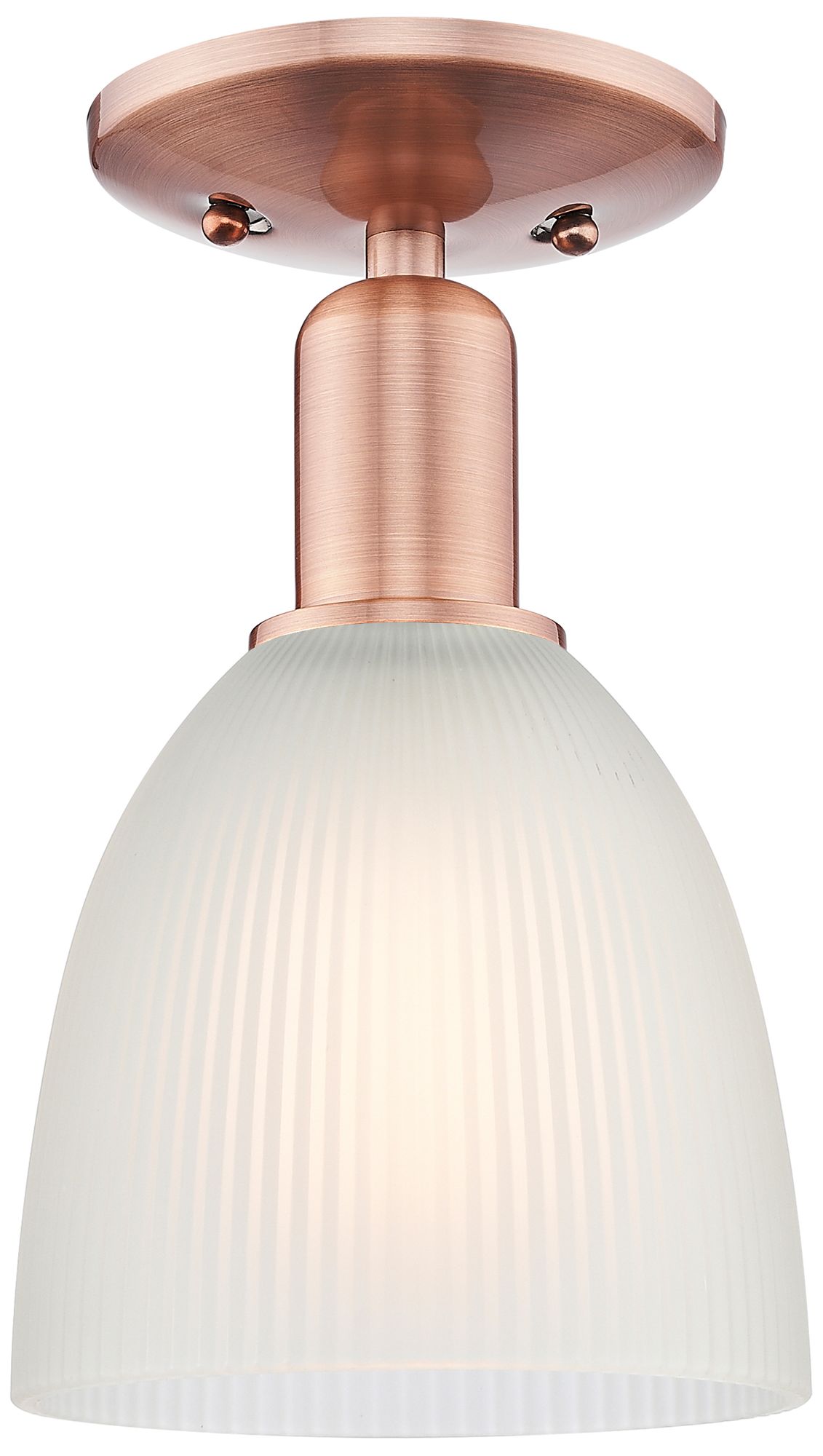 Arcadia Castile 6"W Antique Copper Semi.Flush Mount With White Shade