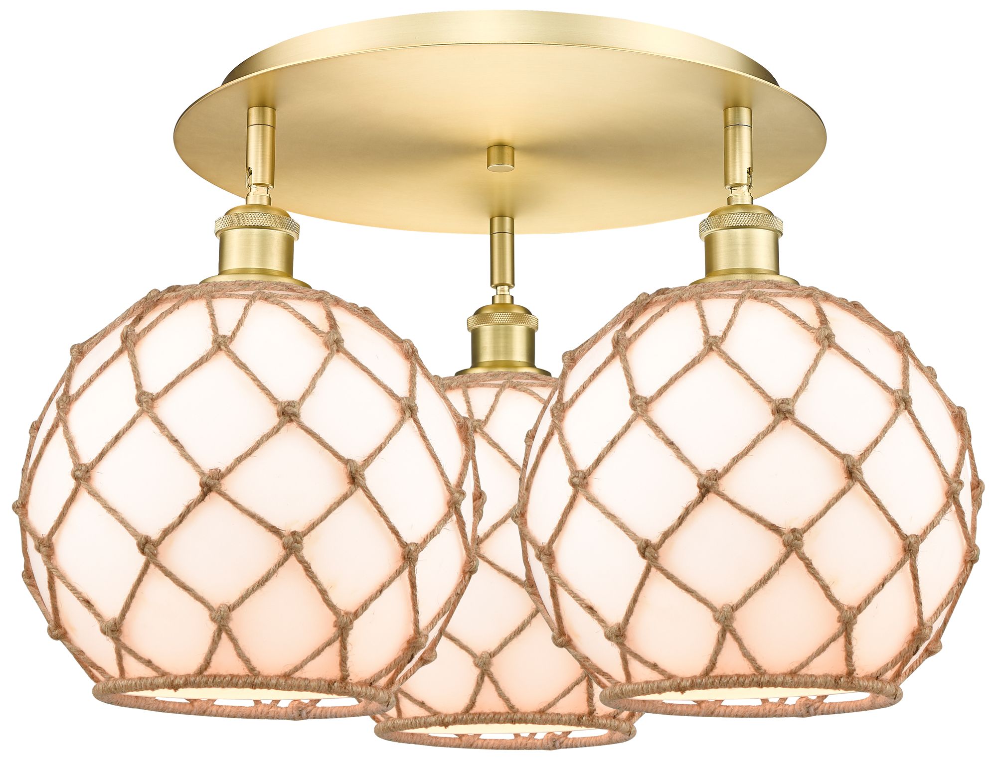 Ballston Farmhouse 22"W 3 Light Gold Flush Mount w/ White Brown Shade