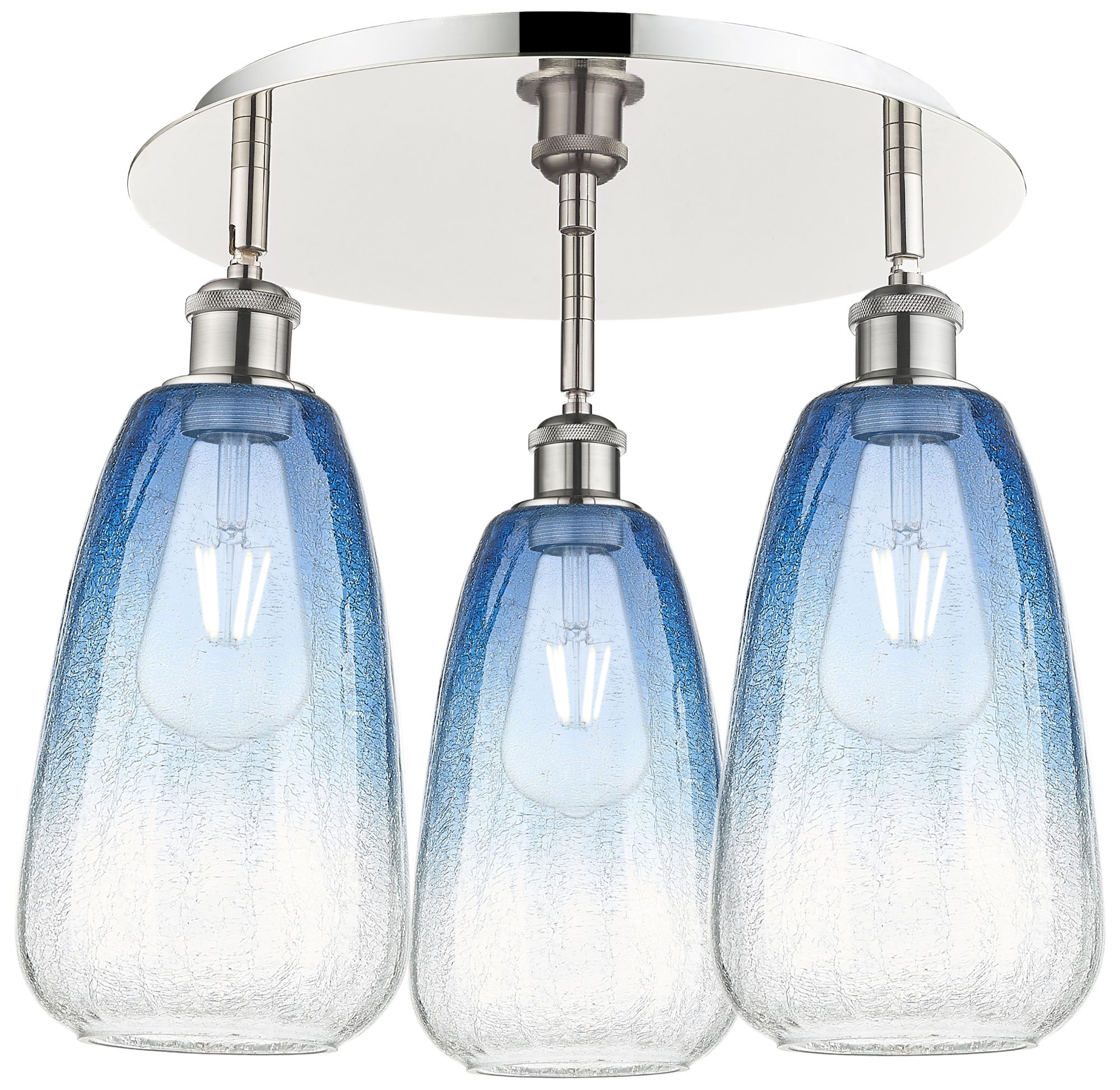 Brookhaven Almond 18"W 3-Light Nickel Flush Mount w/ Sapphire Shade