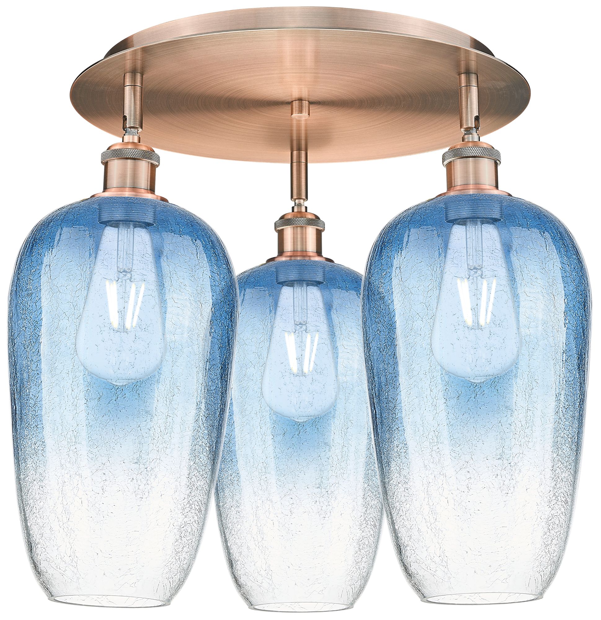 Brookhaven Flute 19"W 3-Light Copper Flush Mount w/ Sapphire Blue Shade