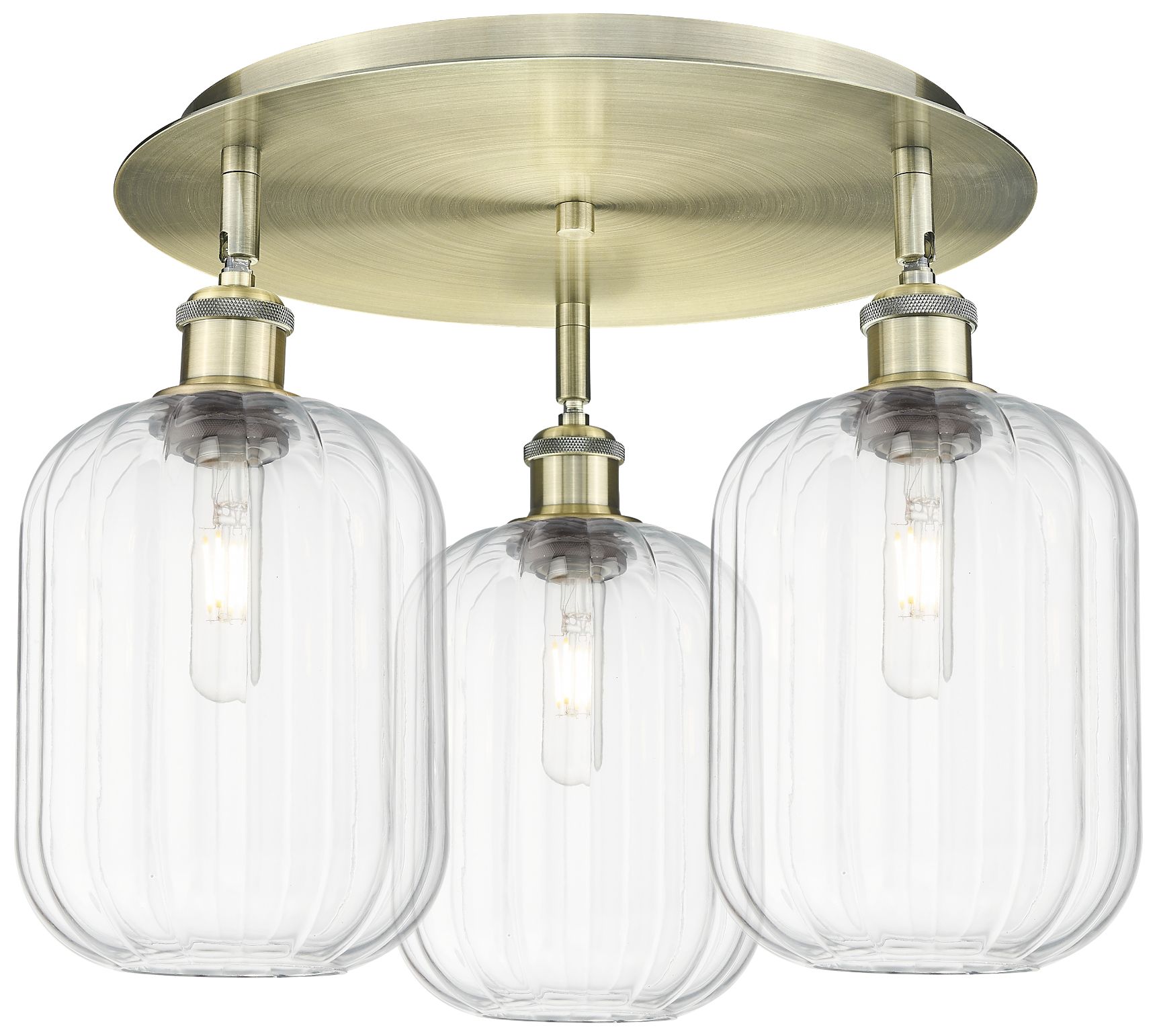 Preston 19" Wide 3-Light Antique Brass Flush Mount with Clear Shade