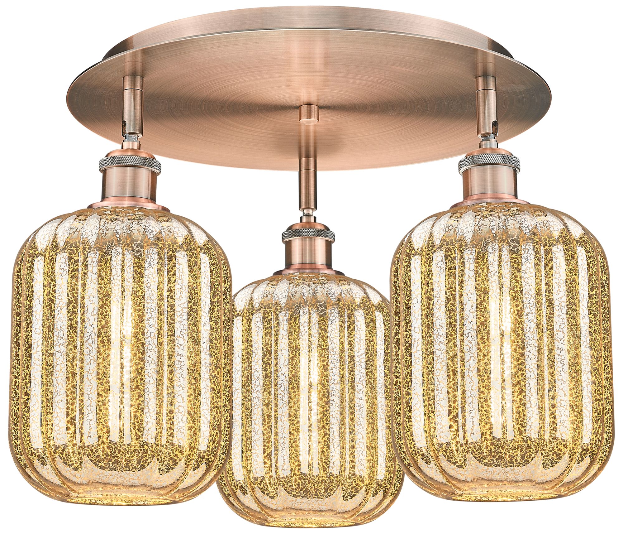 Preston 19" Wide 3-Light Antique Copper Flush Mount with Mercury Shade