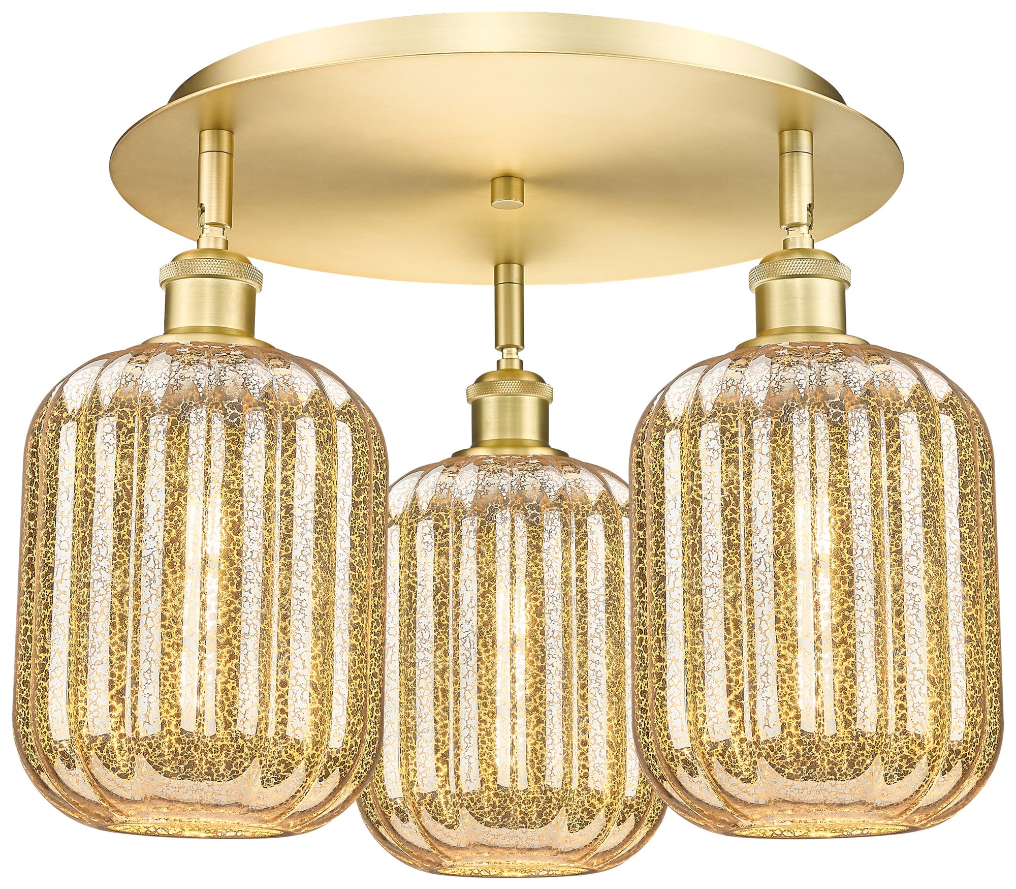 Crown Point 39.25"W 3 Light Brass Flush Mount w/ 12" Mercury Shade