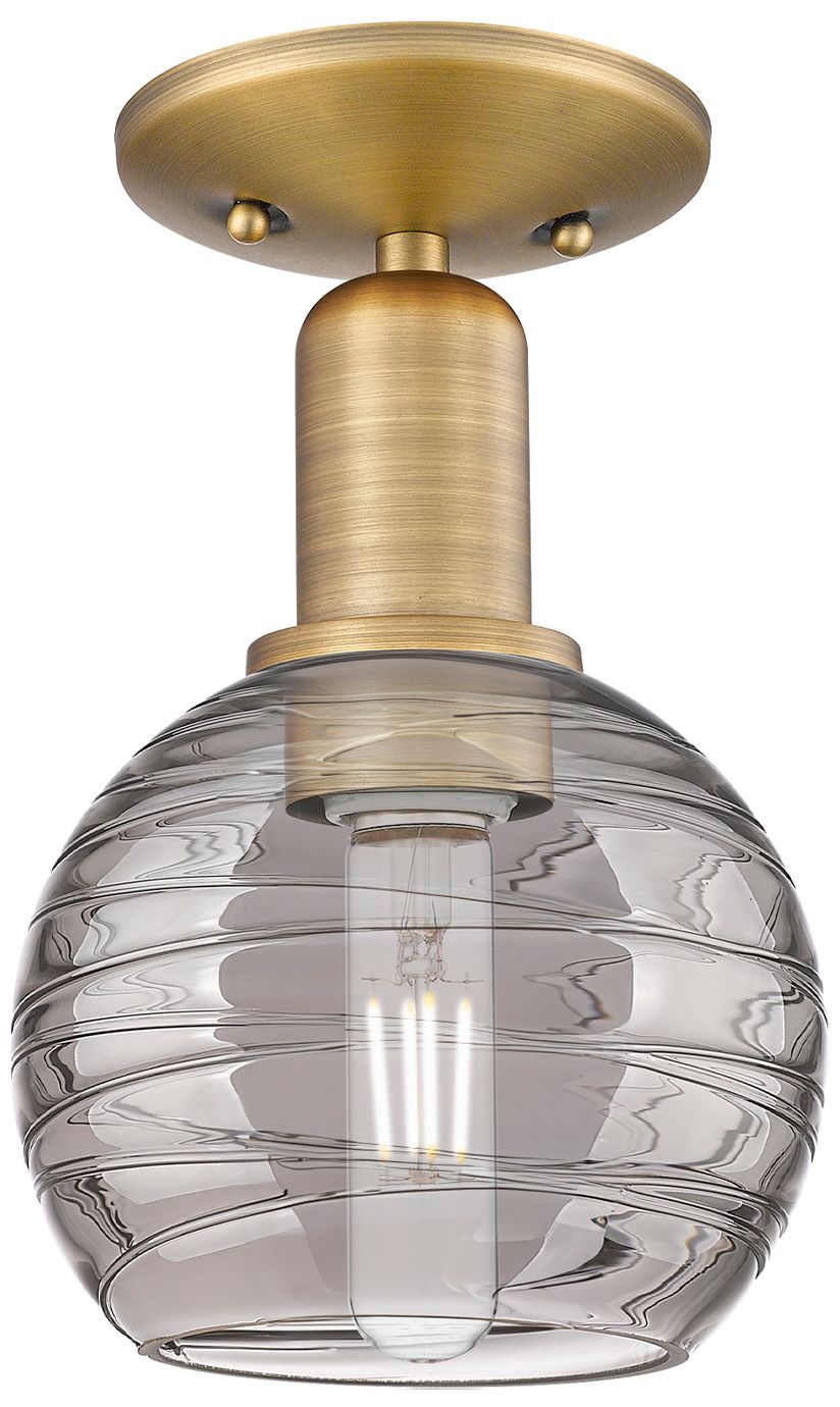 Downtown Athens Deco 6"W Brass Semi-Flush w/ Smoke Swirl Shade