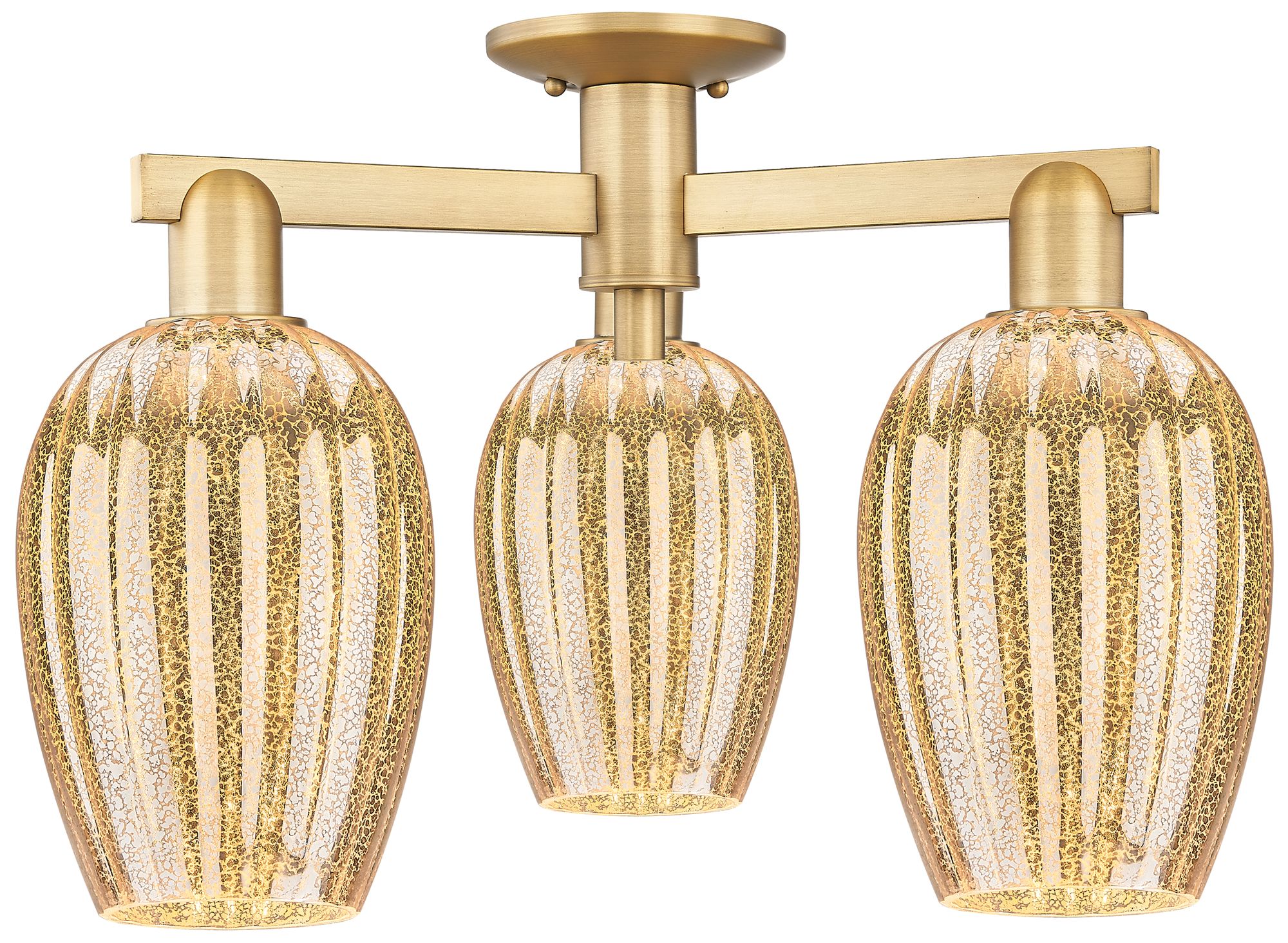Preston 24"W 3 Light Brushed Brass Semi-Flush With Mercury Flute Shade