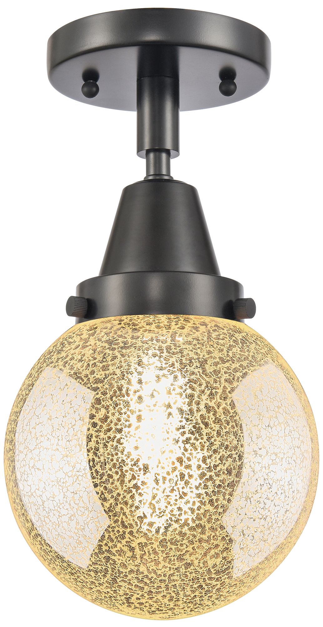 Caden Beacon 6" Wide Matte Black Flush Mount With Mercury Shade