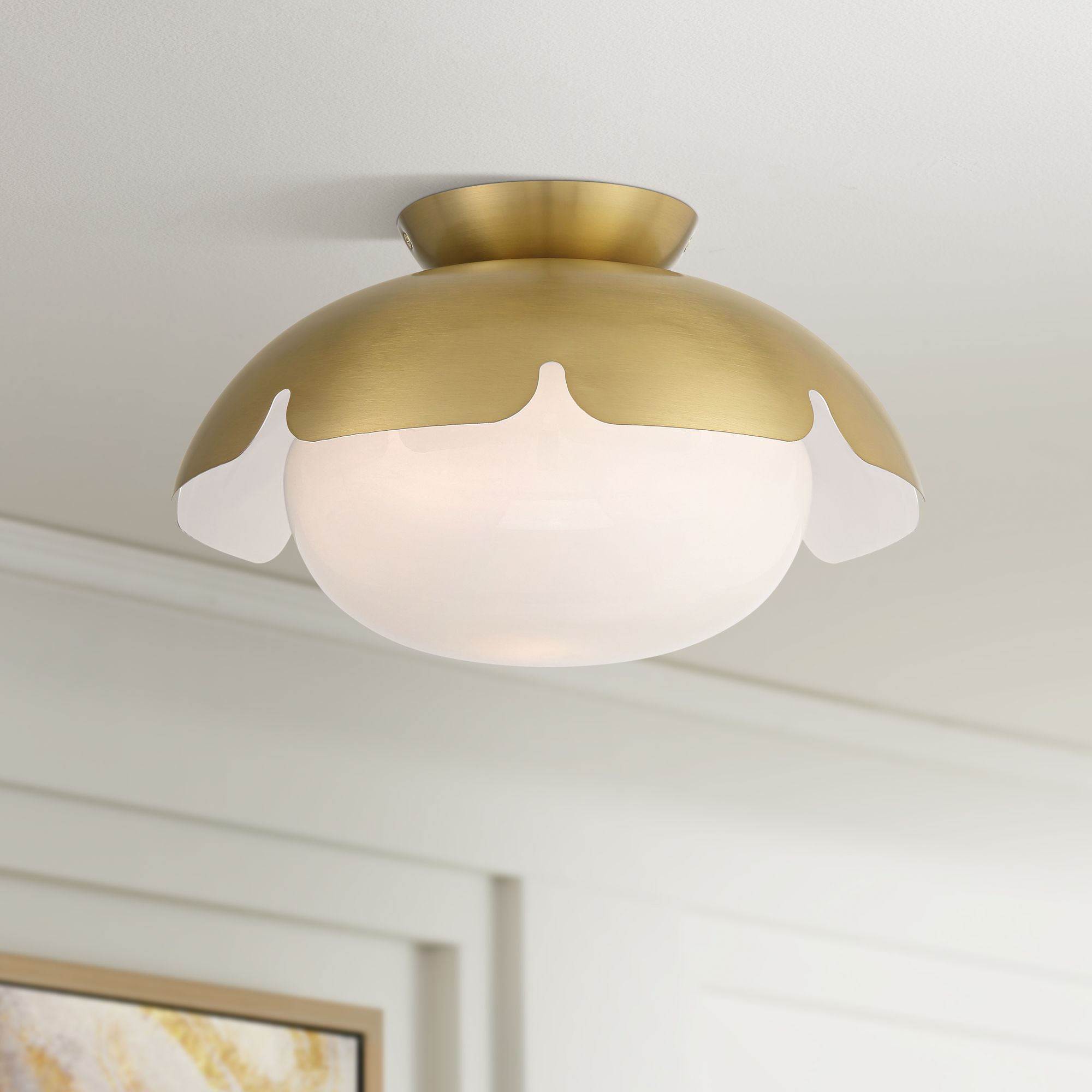 Possini Euro Novia 14"W Brass Ceiling Light with White Glass