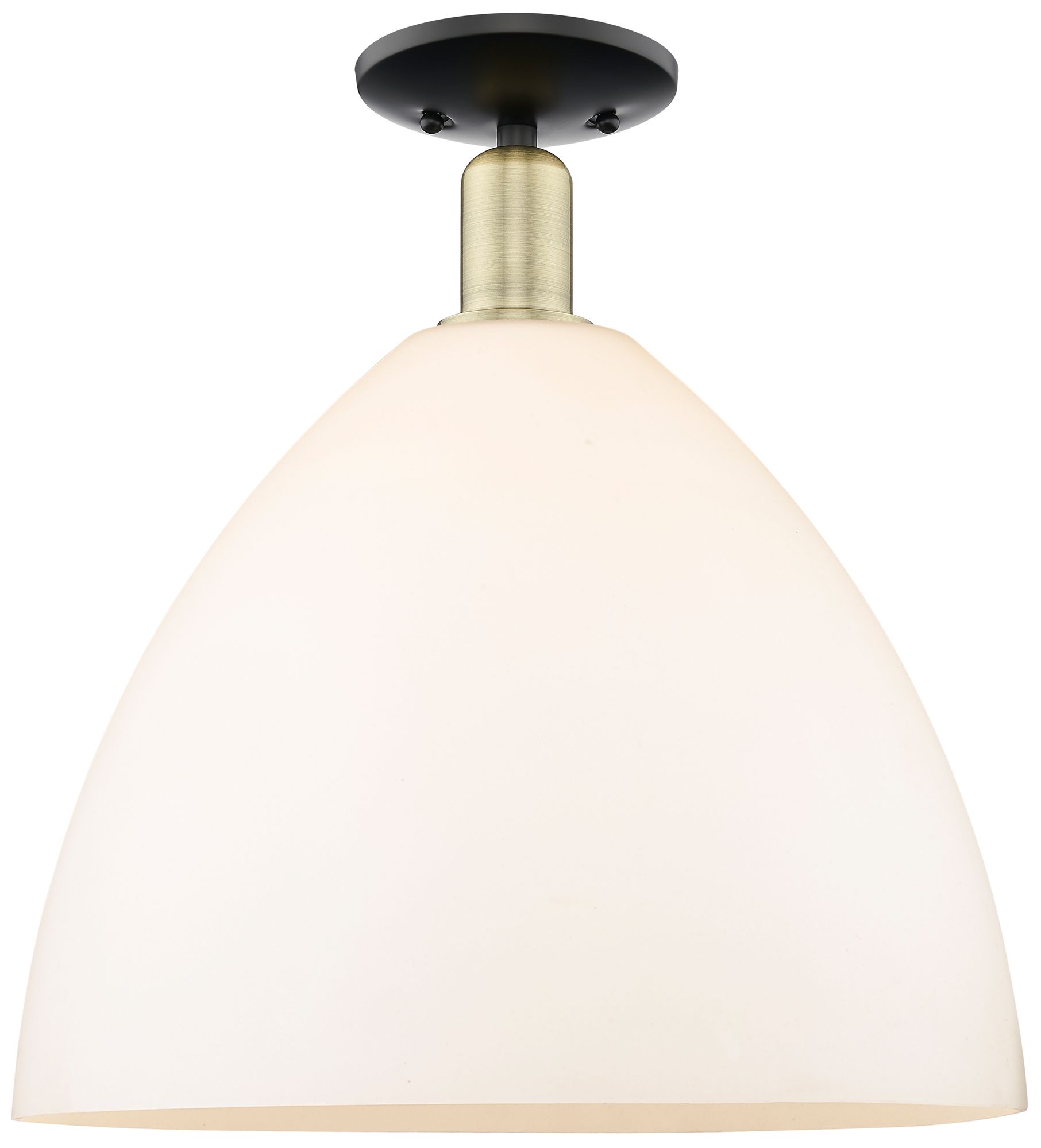 New Arcadia Bristol 16"W Black Brass Semi.Flush Mount w/ Matte White Shade