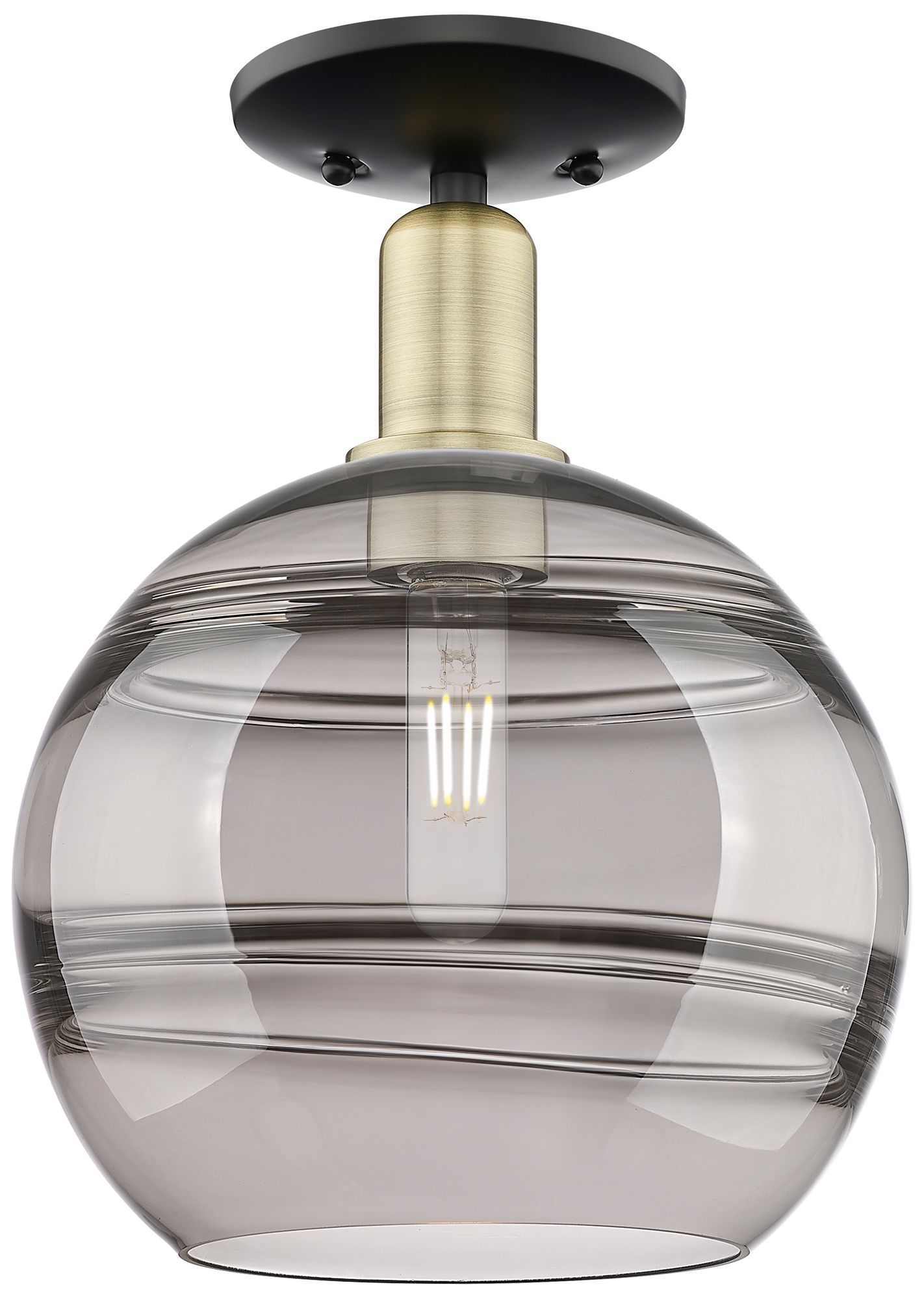 New Arcadia Rochester 10"W Black Brass Semi-Flush w/ Light Smoke Shade