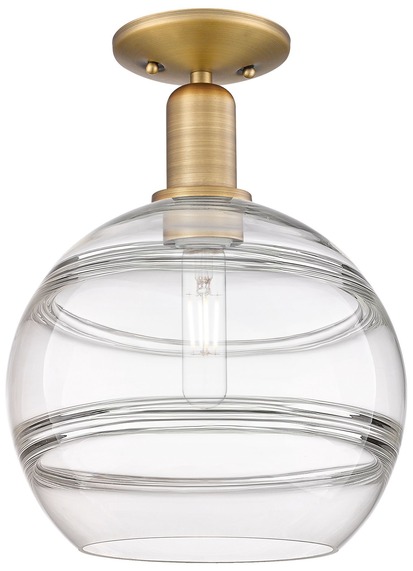 New Arcadia Rochester 10"W Brushed Brass Semi.Flush Mount With Clear Shade