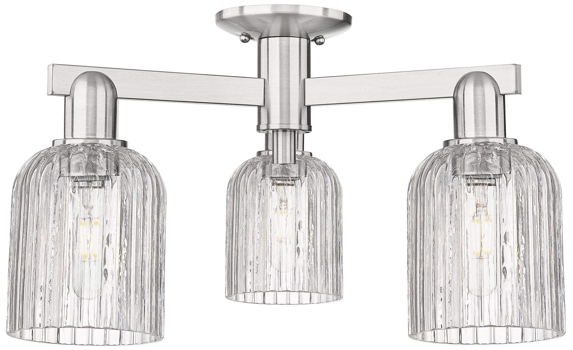 Bridal Veil 23"W 3 Light Satin Nickel Semi-Flush w/ Clear Shade