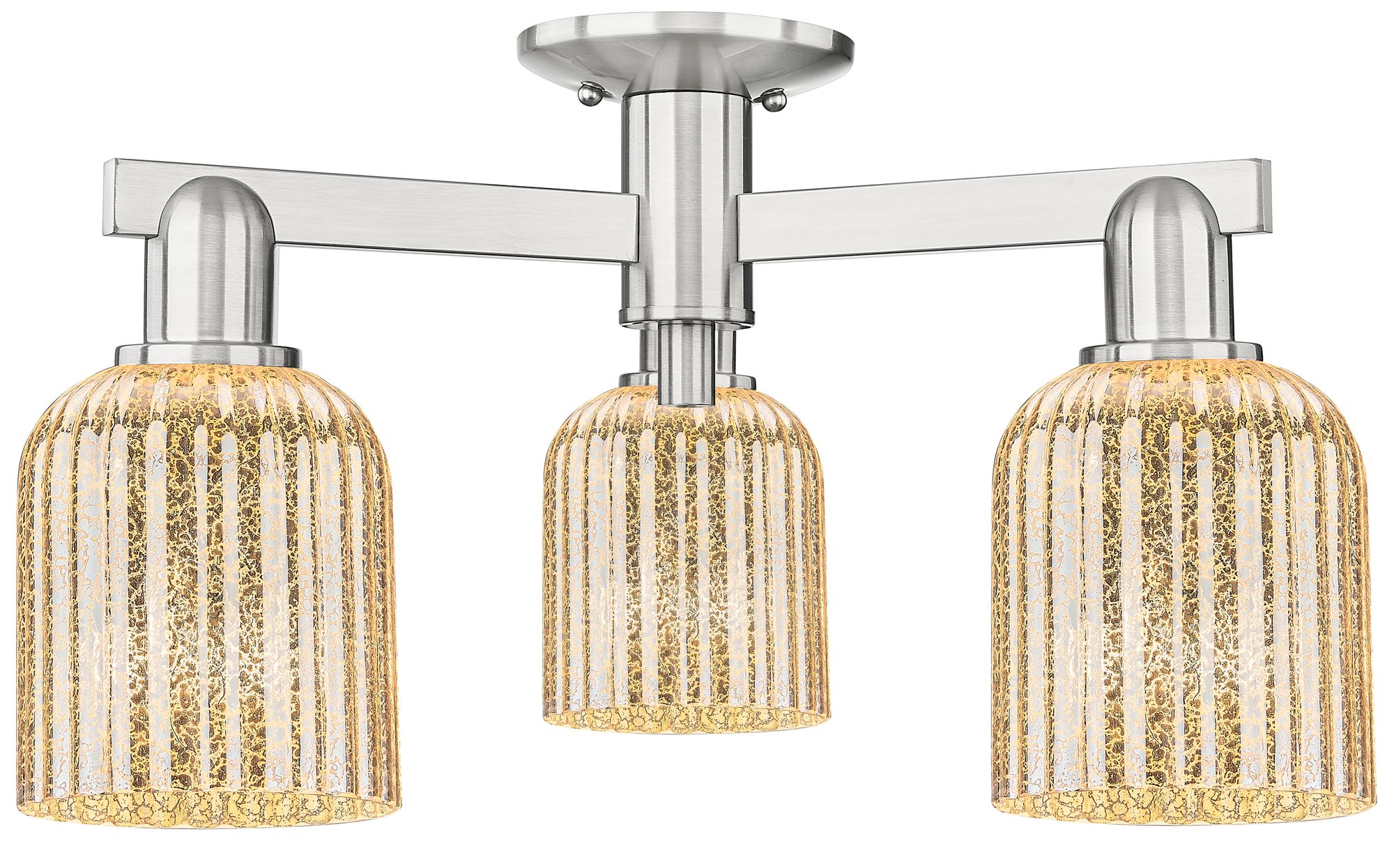 Bridal Veil 23"W 3 Light Satin Nickel Semi-Flush w/ Mercury Shade