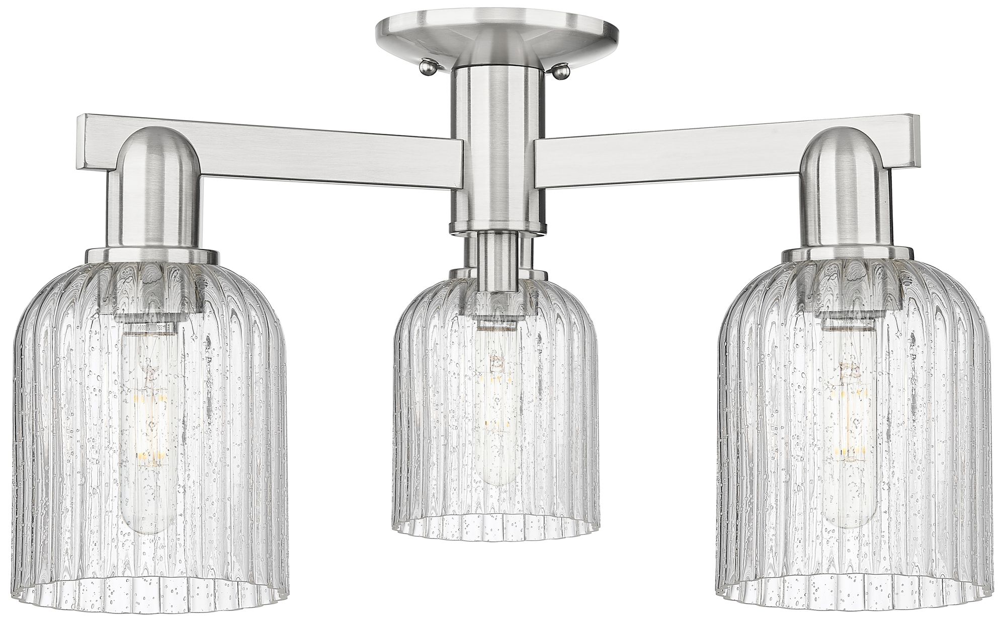 Bridal Veil 23"W 3 Light Satin Nickel Semi-Flush w/ Seedy Shade