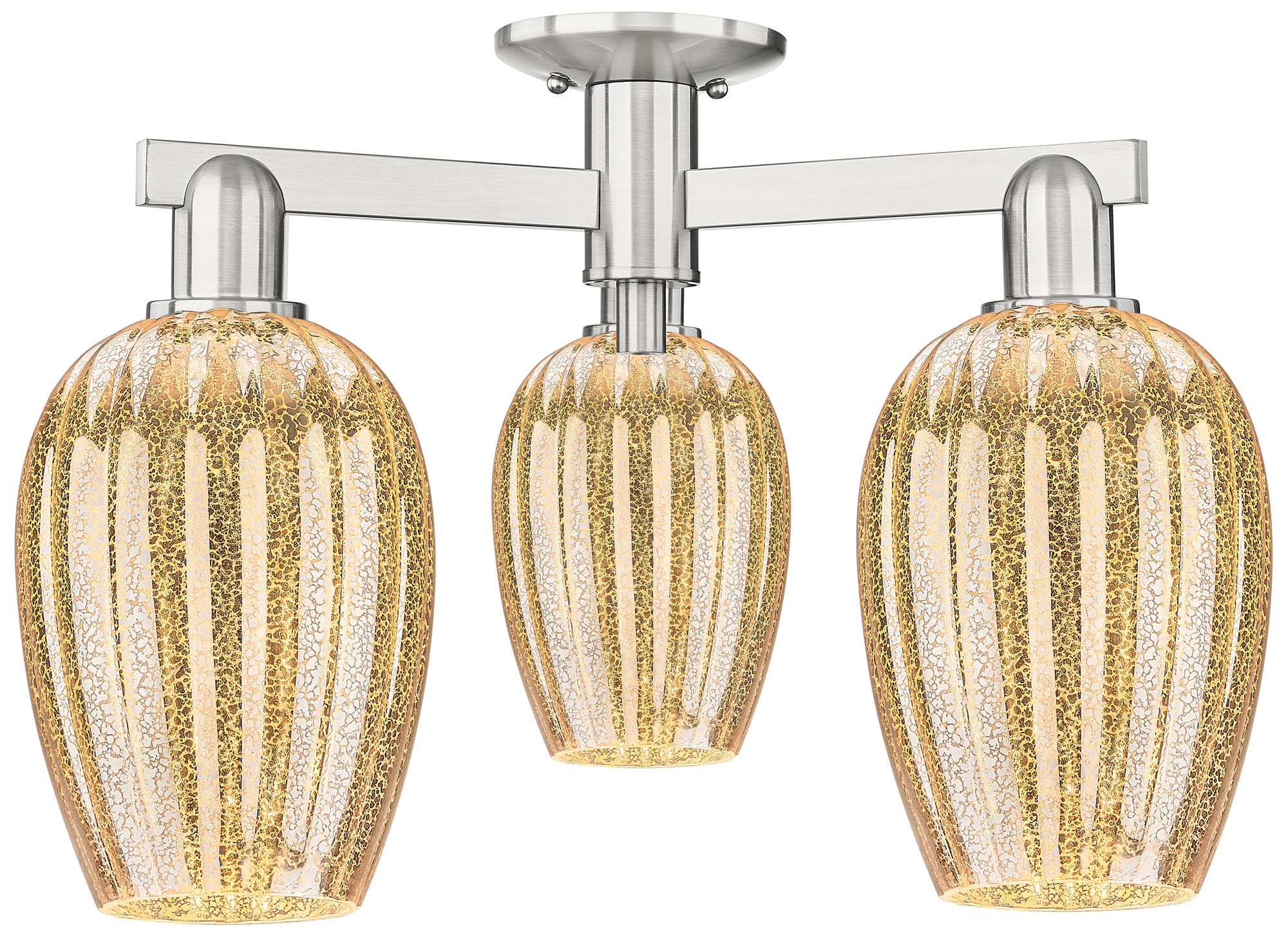 Preston 24"W 3 Light Satin Nickel Semi-Flush w/ Mercury Flute Shade