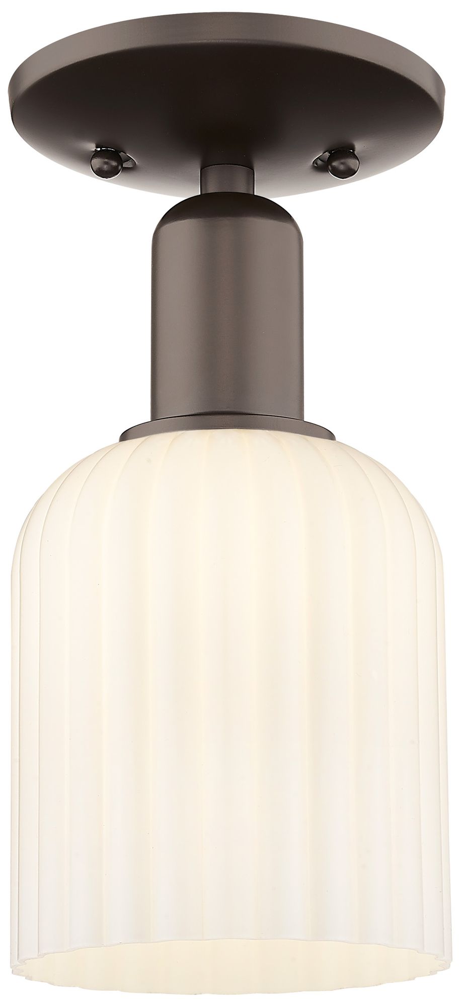 Bridal Veil 5"W Oil Rubbed Bronze Semi-Flush With Gloss White Shade