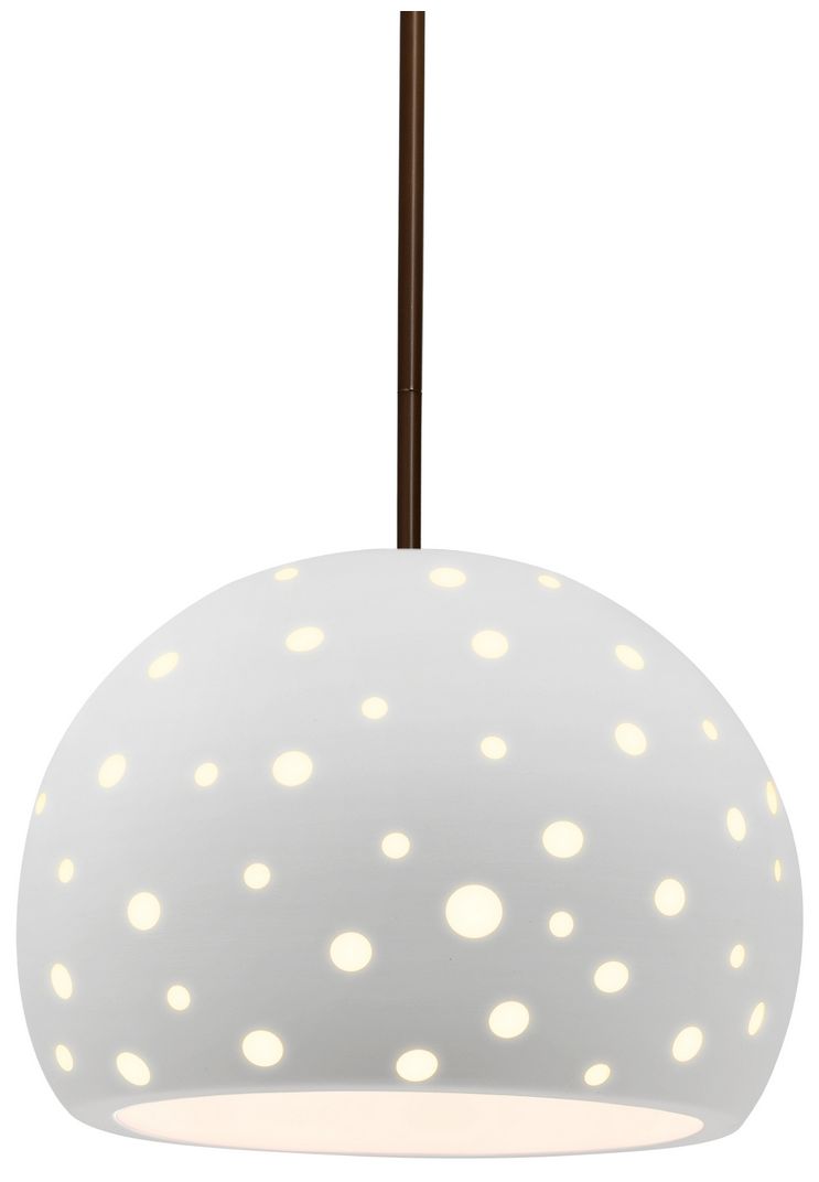 Perforated Globe 10"W Bisque, Dark Bronze Pendant - White Cord