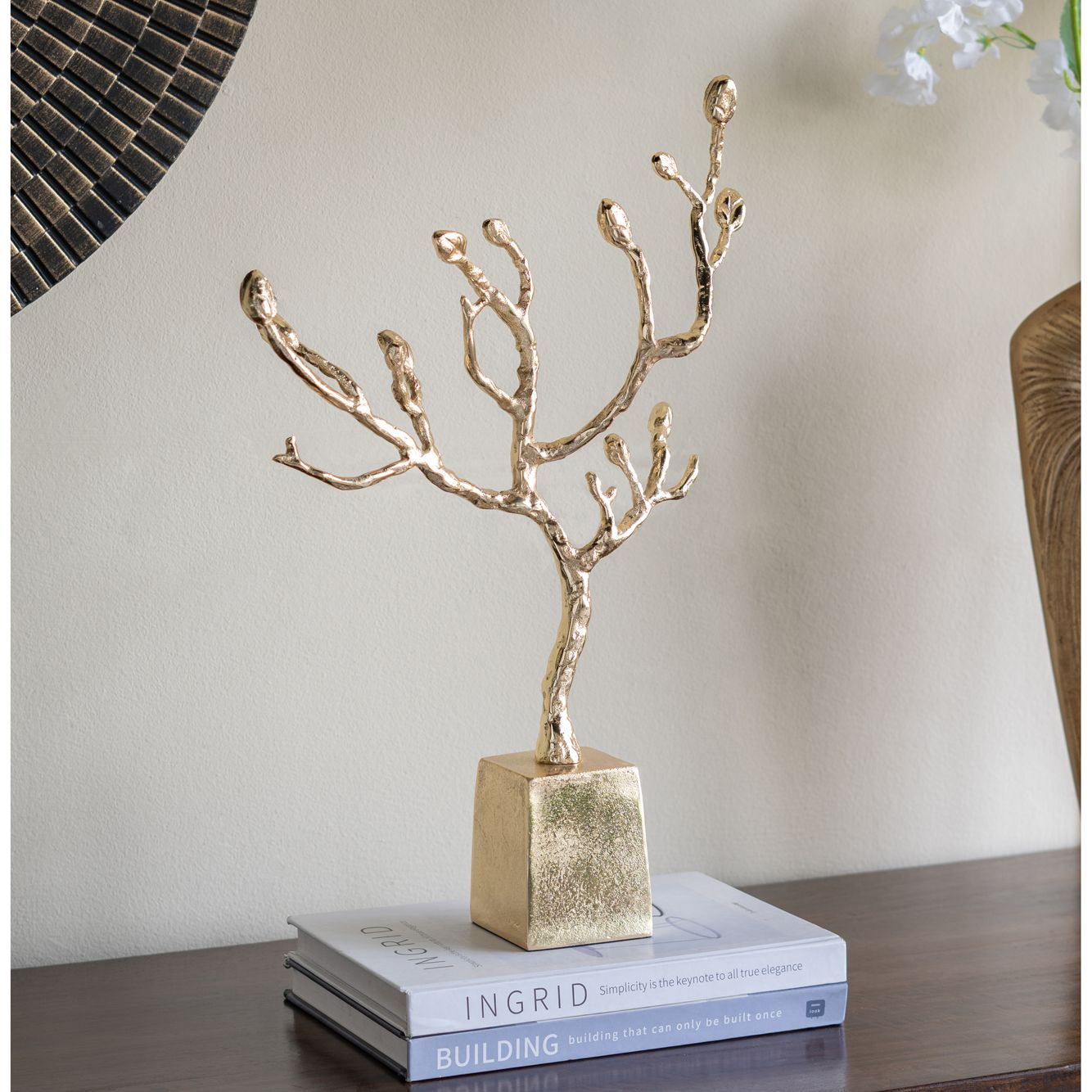 Decorative Cast Aluminum Tree Sculpture with Gold Finish - Gold