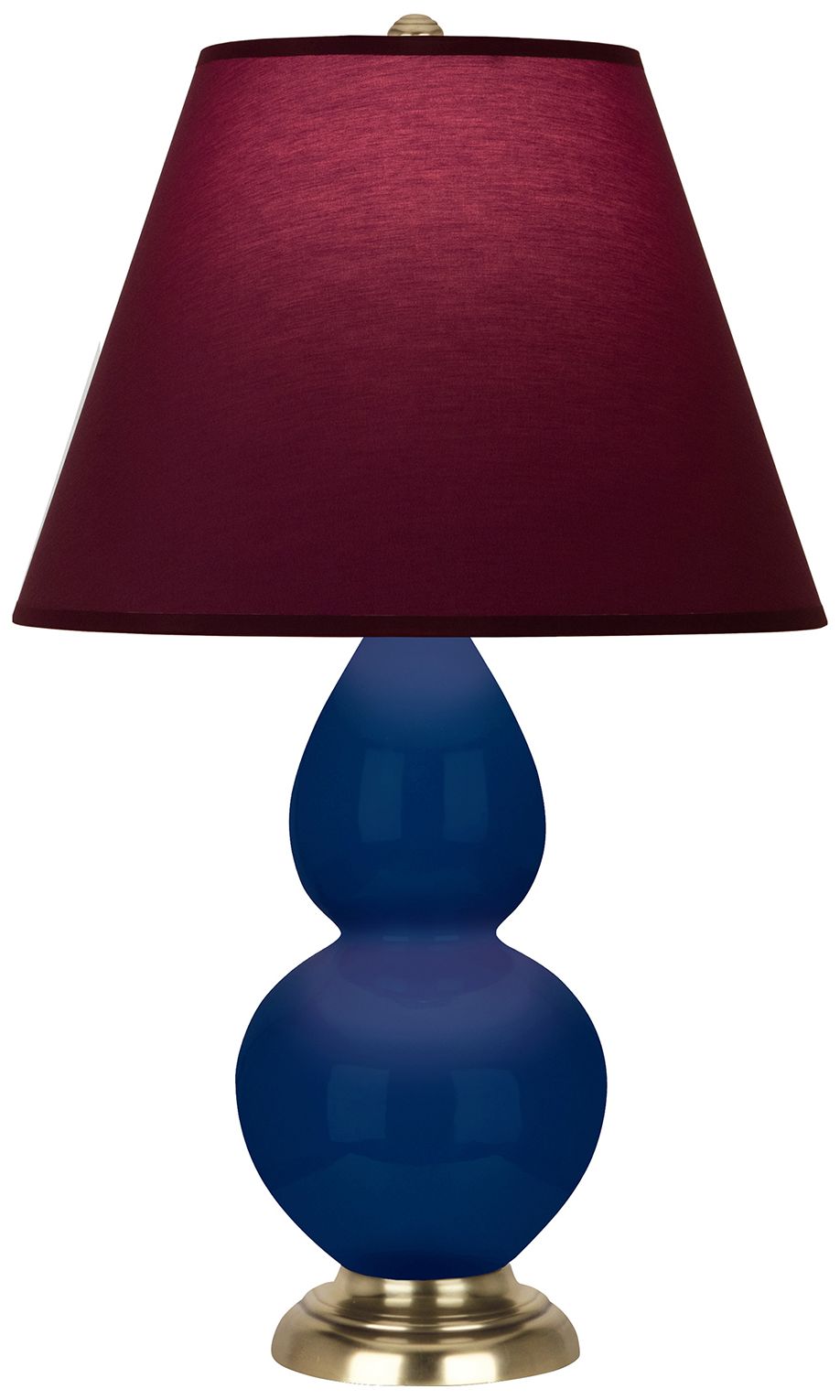 Double Gourd 22.75"H Cobalt And Brass Lamp w/ Plum And Lavender Shade