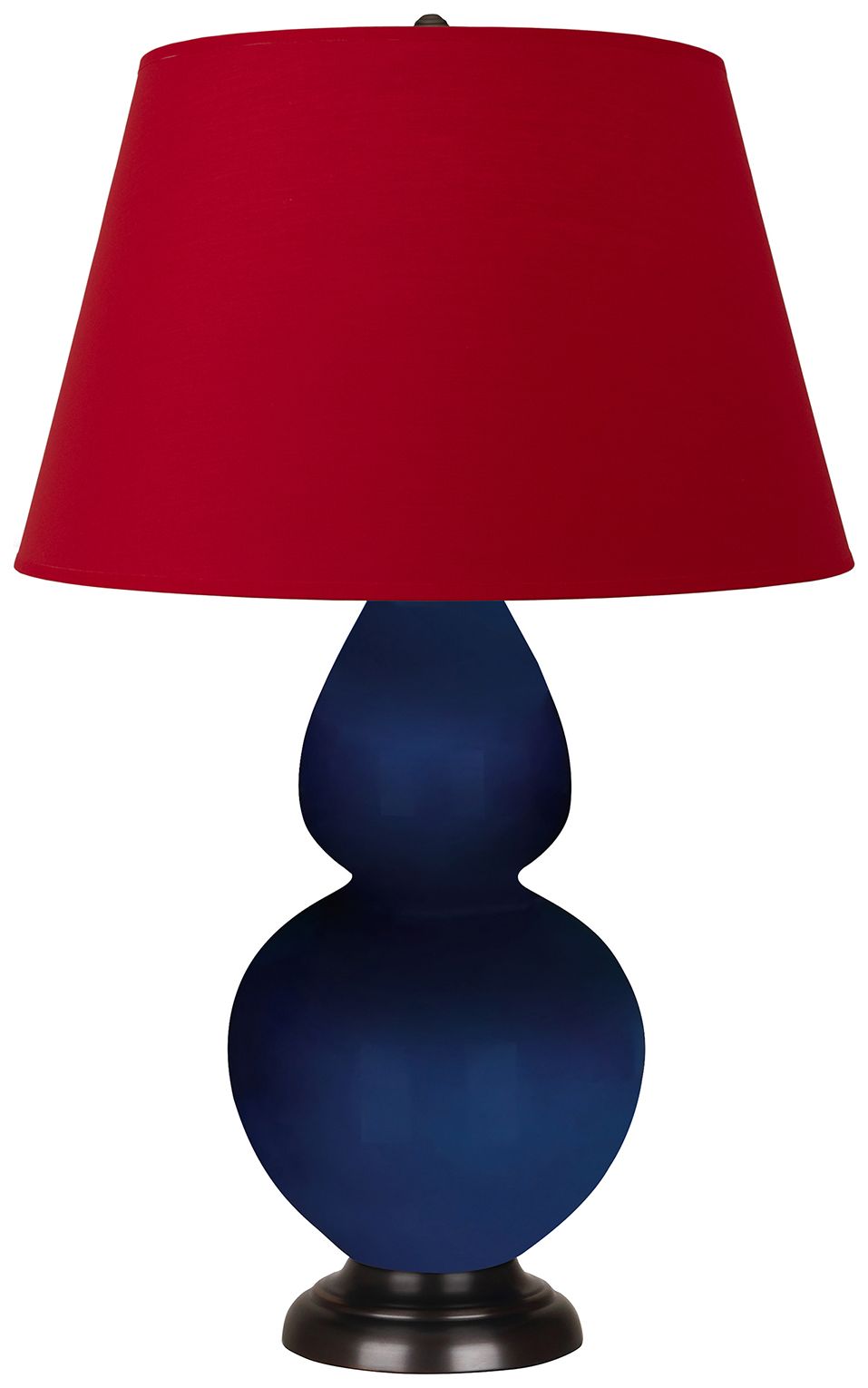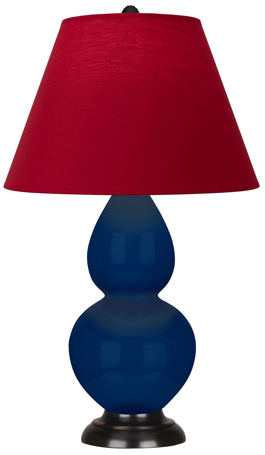 Double Gourd 31"H Cobalt And Bronze Table Lamp w/ Black And Red Shade