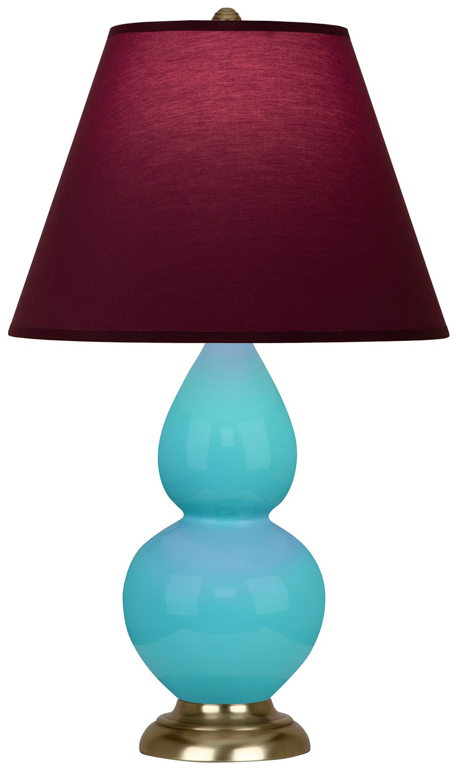 Double Gourd 22.75"H Blue And Bronze Lamp w/ Lavender And Plum Shade