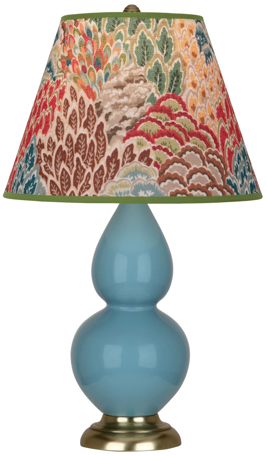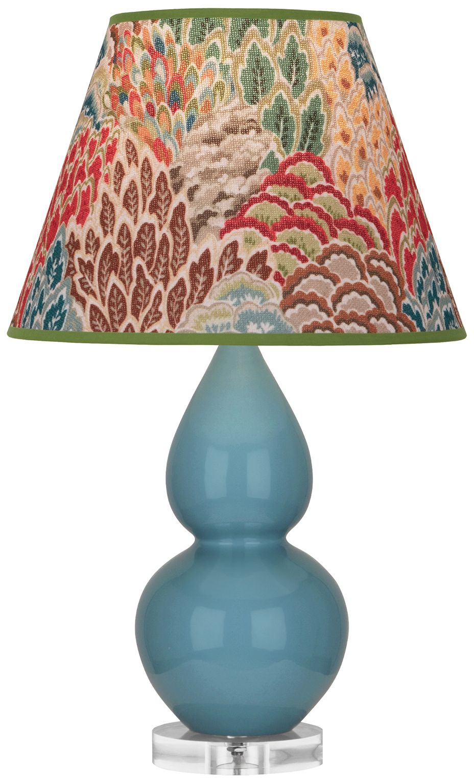 Double Gourd 22"H Matte Blue And Lucite Lamp w/ Fall Floral Shade