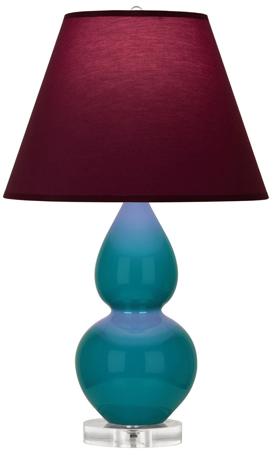 Double Gourd 22"H Peacock And Lucite Lamp w/ Plum And Lavender Shade