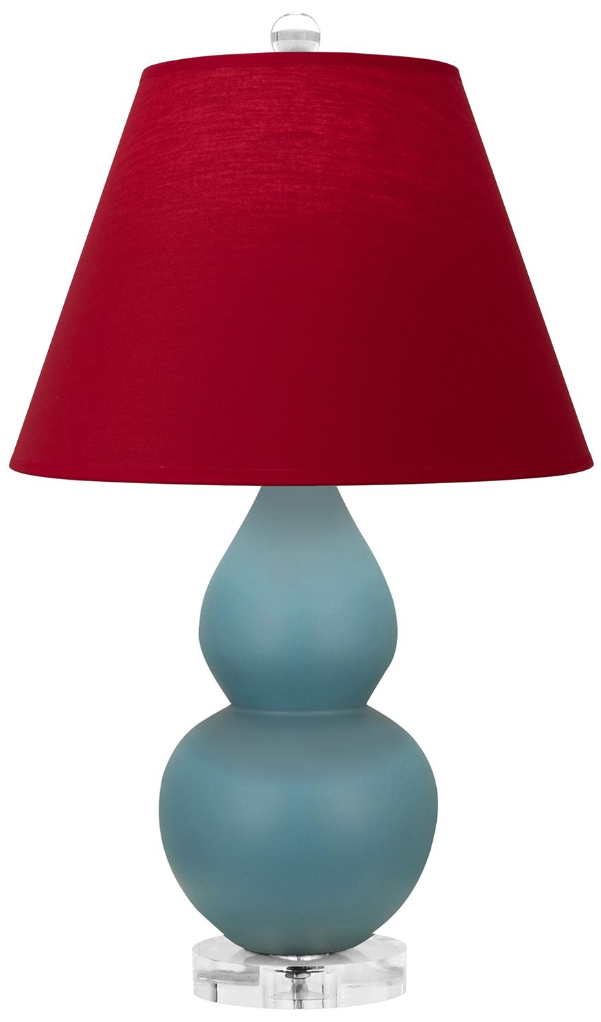 Double Gourd 22"H Matte Blue And Lucite Lamp w/ Ink And Rose Shade
