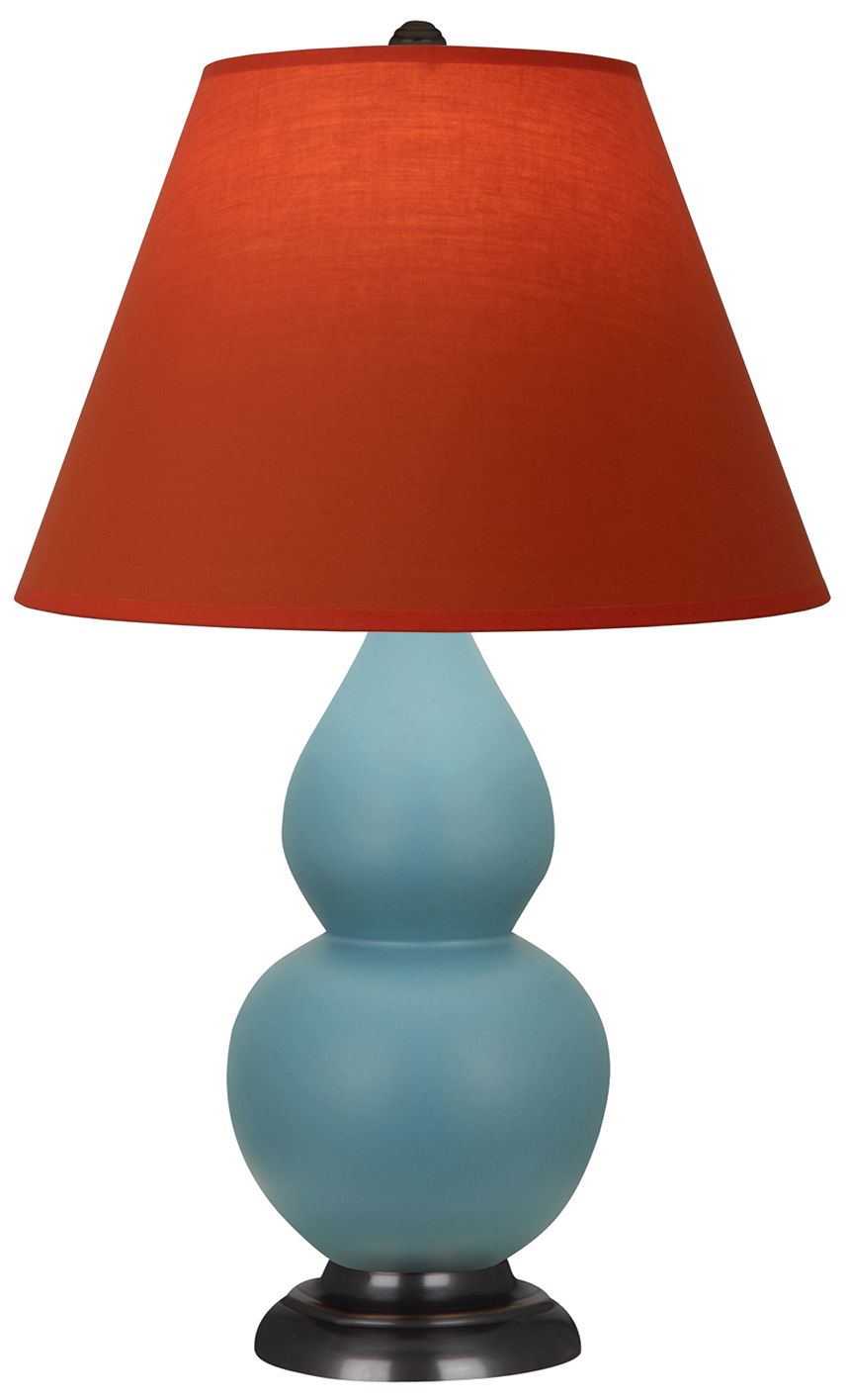 Double Gourd 23"H Steel Blue And Bronze Lamp w/ Tangerine And Taupe Shade