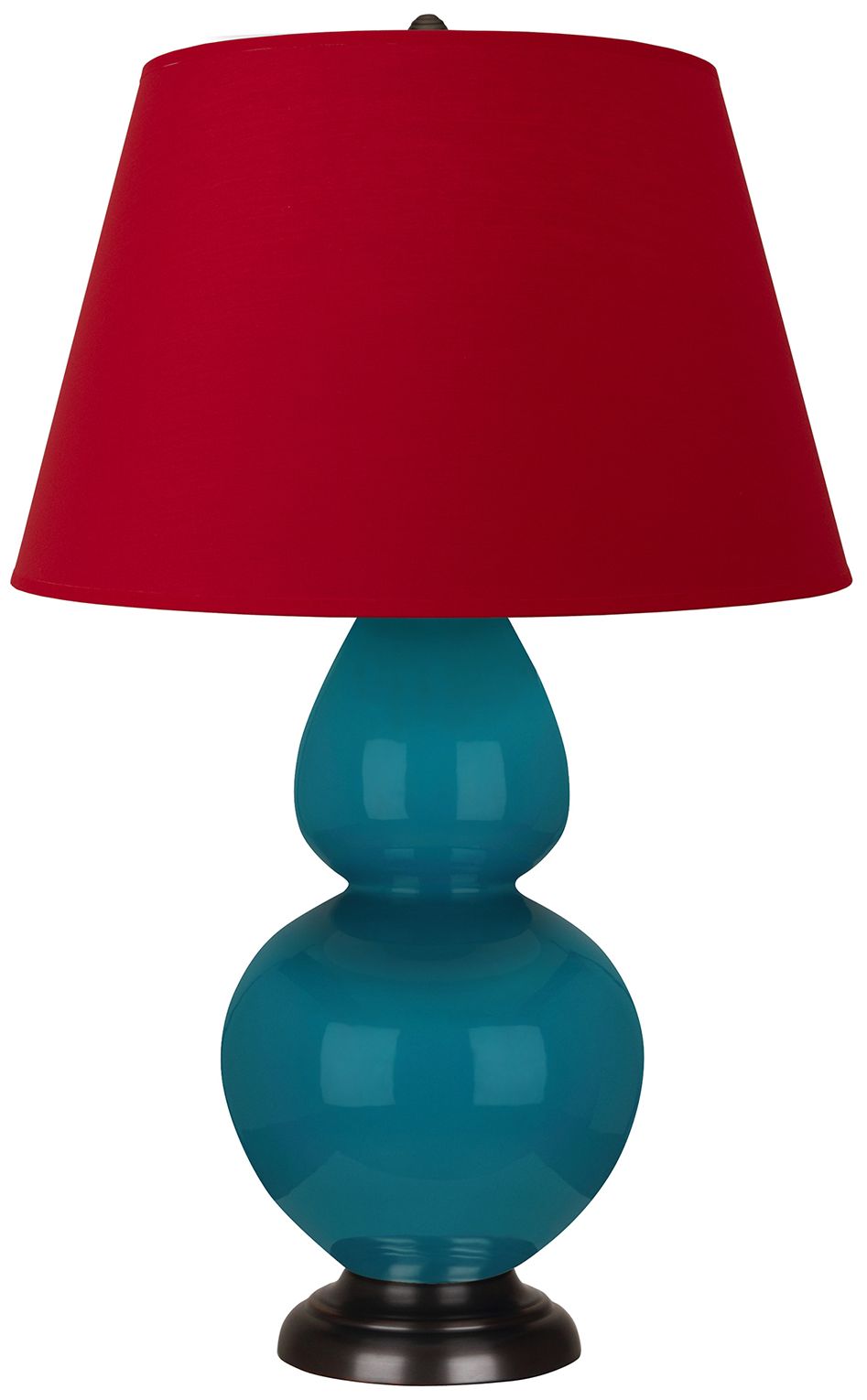 Double Gourd 31"H Peacock And Bronze Table Lamp w/ Black And Red Shade