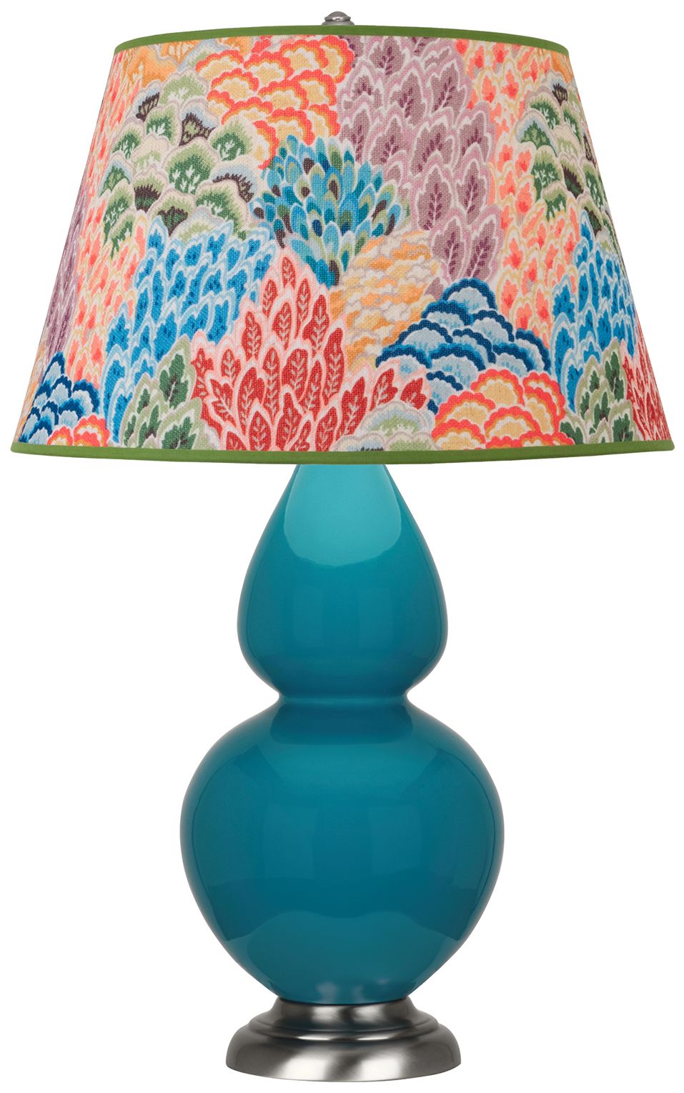 Double Gourd 31"H Peacock And Silver Table Lamp w/ Spring Floral Shade
