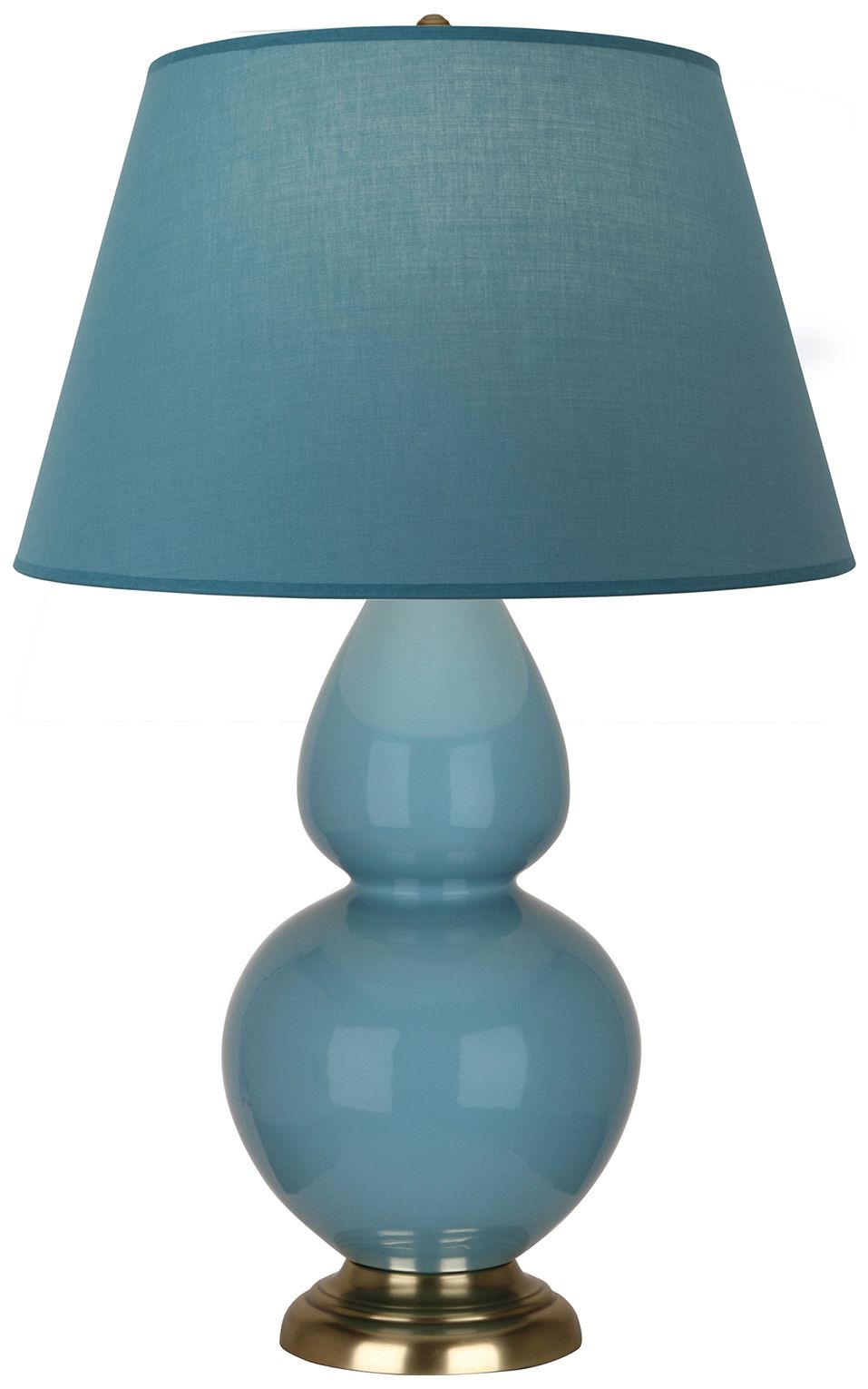 Double Gourd 31"H Steel Blue And Brass Lamp w/ Bright Blue And Gray Shade