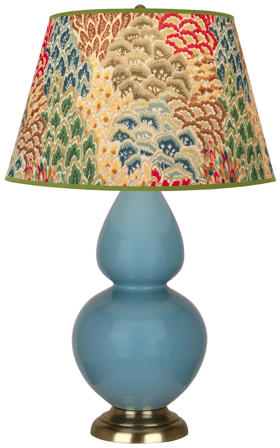 Double Gourd 31"H Steel Blue And Brass Table Lamp w/ Fall Floral Shade