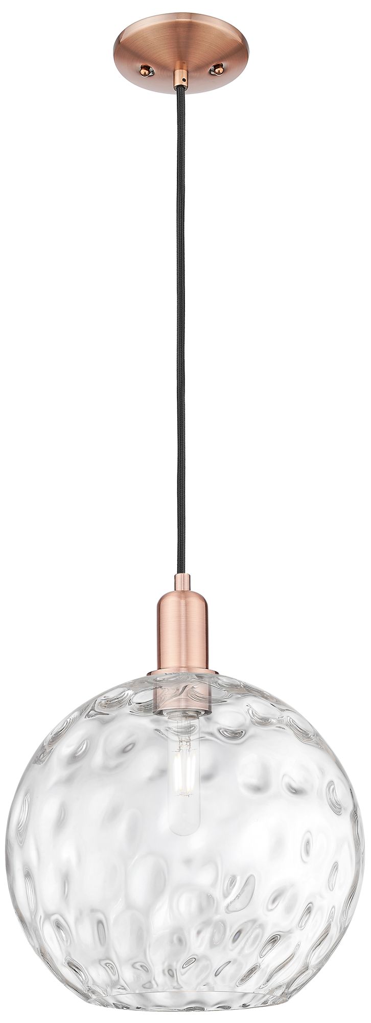 Arcadia Athens 12"W Copper Cord Hung Mini Pendant w/ Water Glass Shade