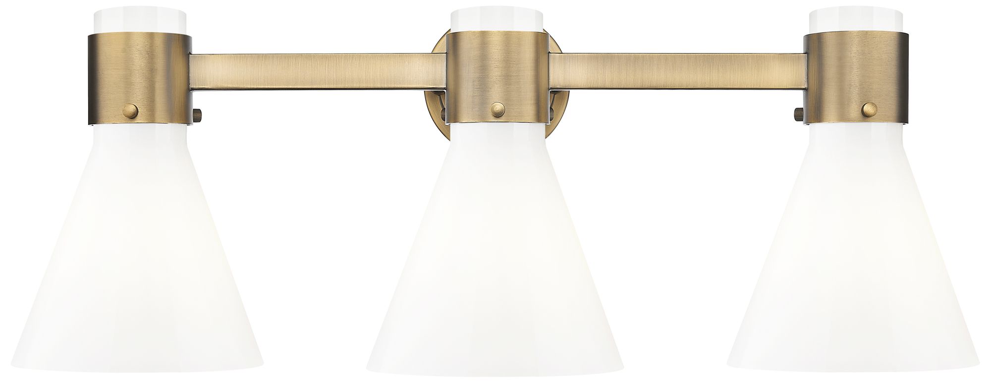 Lawton Cone 24"W 3 Light Brass Wall Bath Light w/ Gloss White Shade