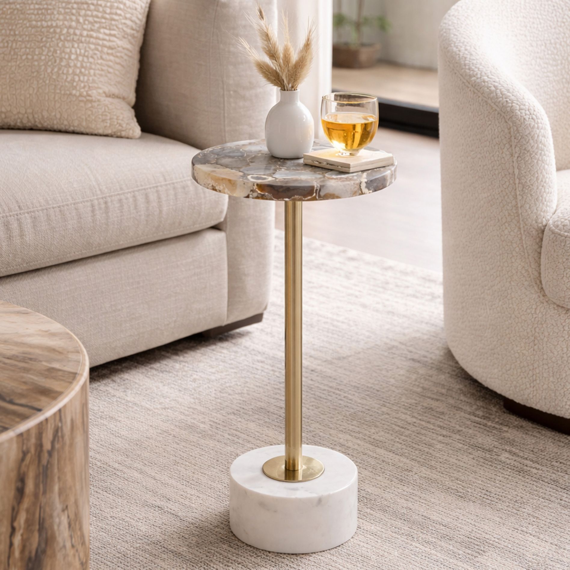 Aurelia Agate Pedestal Accent Table - Wild, Gold & White