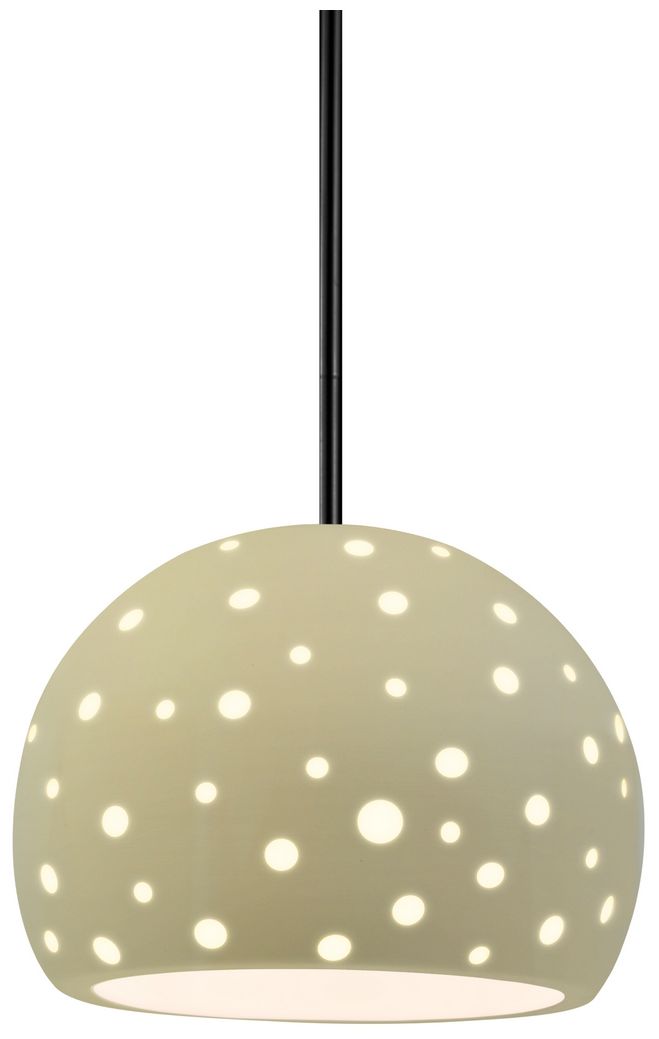 Perforated Globe 7"W Vanilla, Matte Black Pendant - White Cord