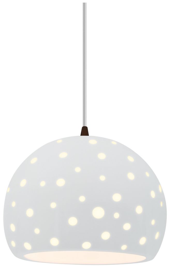 Perforated Globe 7"W Gloss White, Polished Chrome LED Pendant - White Cord