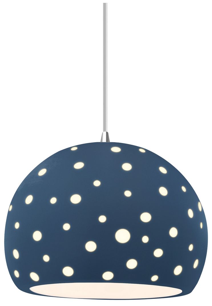 Radiance Avola 15"W Midnight Sky Matte White, Chrome Pendant - White Cord