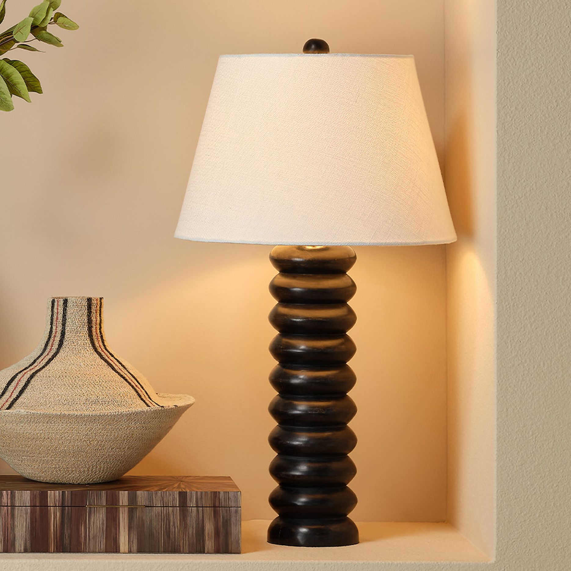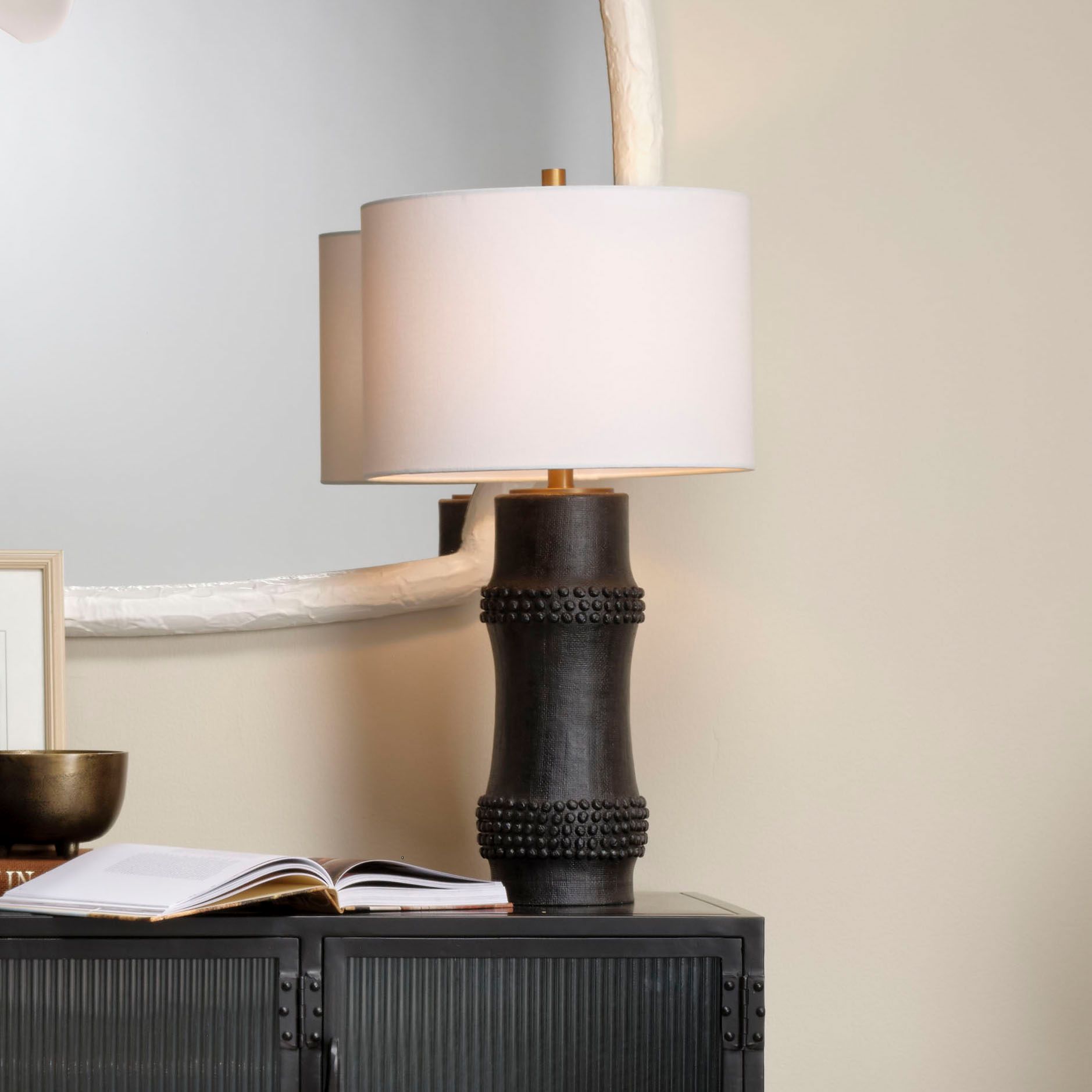 Jamie Young Rail Polyresin Table Lamp with Linen Shade, Black