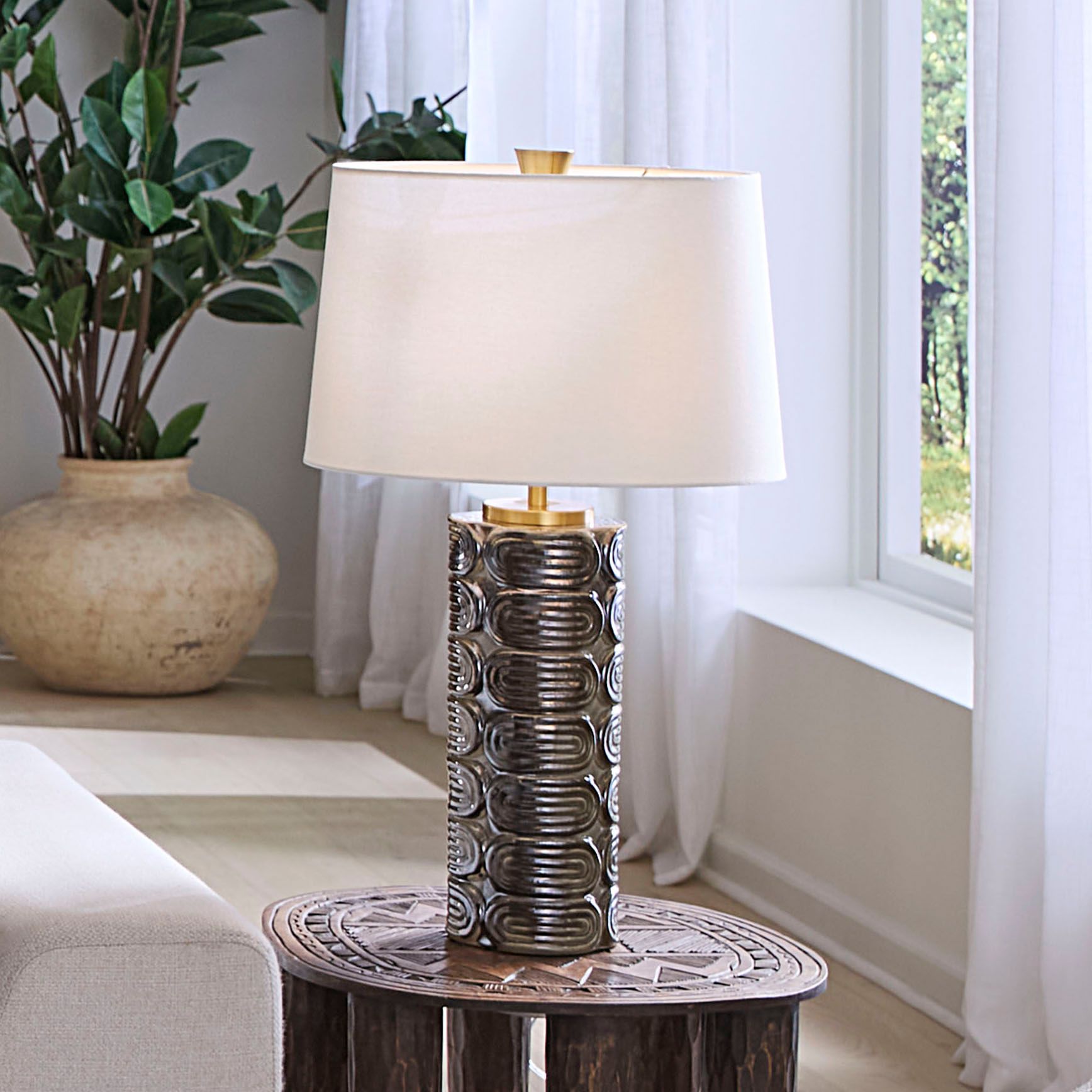 Jamie Young Wright Ceramic Table Lamp with Linen Shade