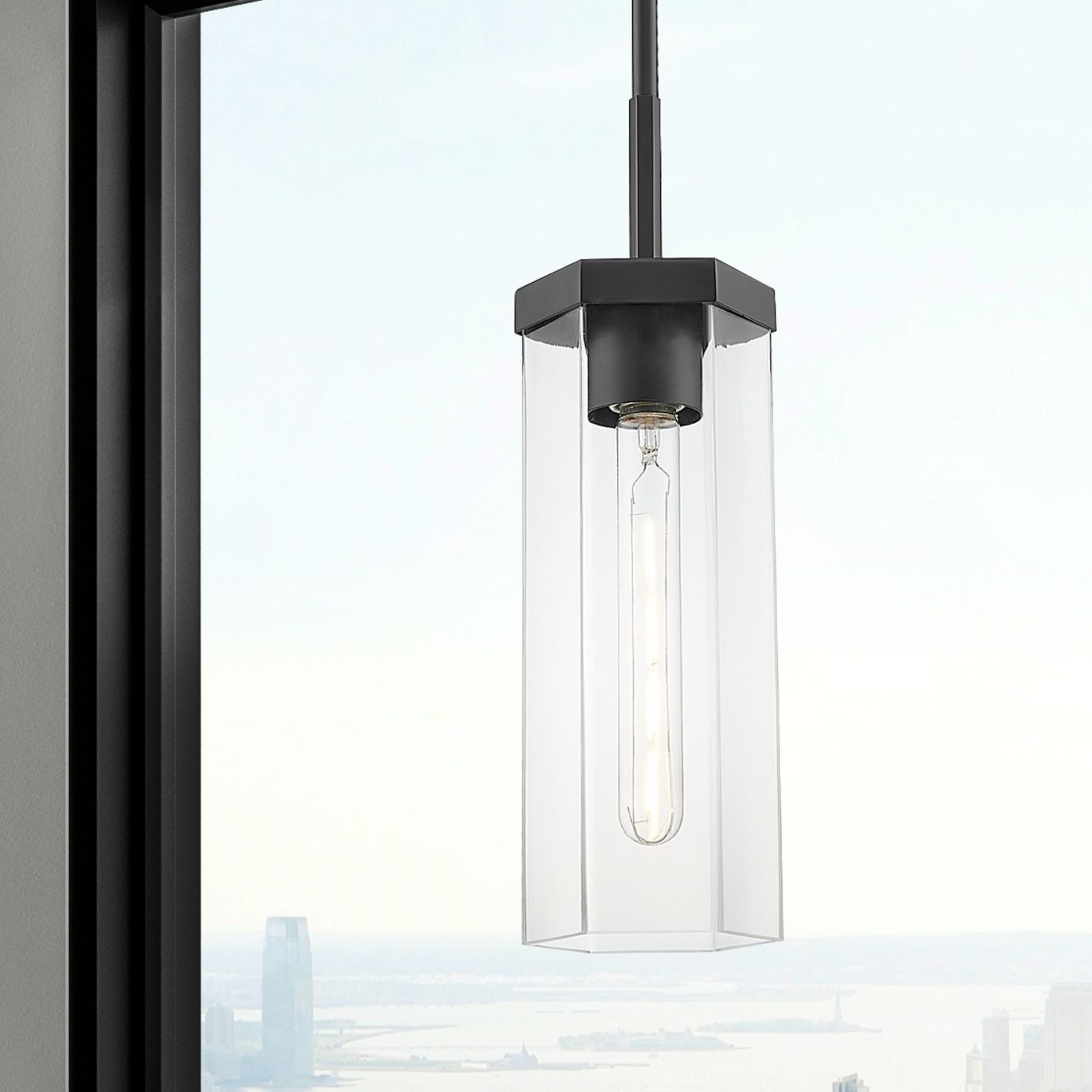 Downtown Blakeley 5"W Stem Matte Black Pendant w/ Clear Shade
